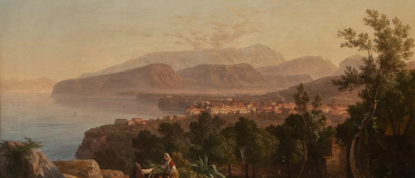 Carl Wilhelm Götzloff (1799 Dresden - 1866 Neapel): Neapolitanische Landschaft mit Orangenpflückerinnen, Öl auf Leinwand, 47 cm x 73...