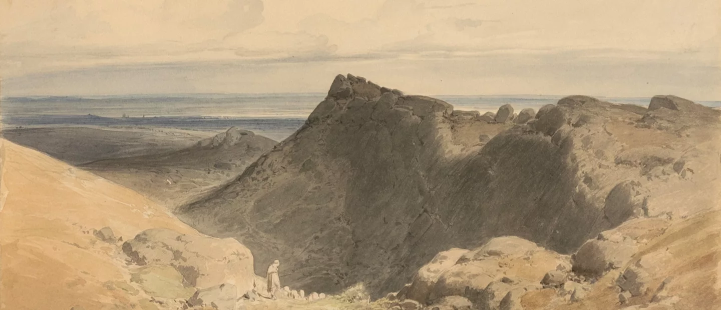 Carl Theodor Reiffenstein (1820 Frankfurt am Main - 1893 ebenda): Die Teufelsmauer bei Blankenburg im Harz, Aquarell auf Papier, 22,5...