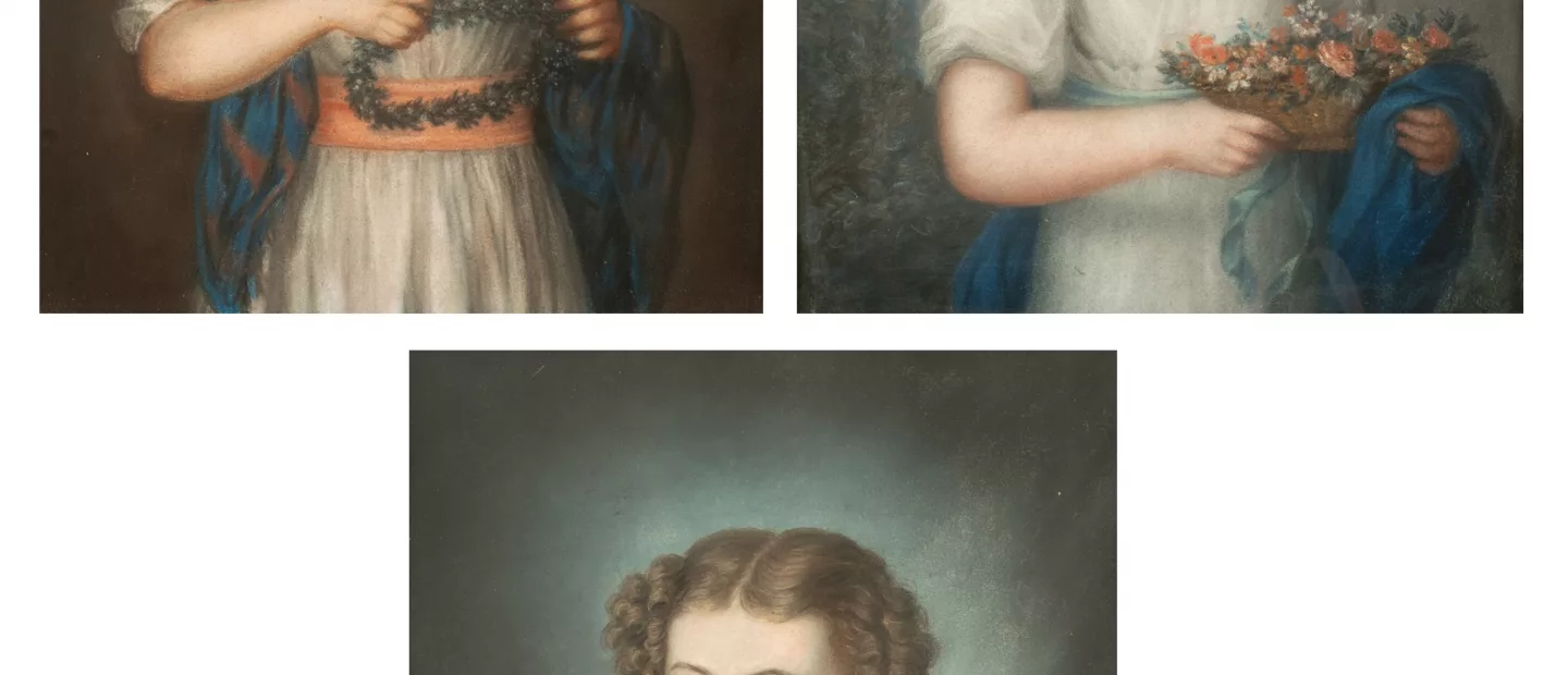 Johann Lorenz Kreul (1764 Markt Erlbach - 1840 Nürnberg) (zugeschrieben): Drei Portraits von Geschwisterkindern, Pastell auf festem...