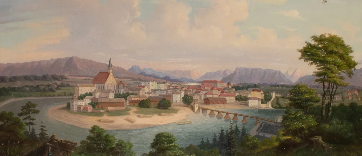 S. Forstner (19 Jh., Deutschland): Laufen an der Salzach, Öl auf Leinwand, 60 cm x 84 cm Leinwandmaß, signiert, 1872 datiert,...