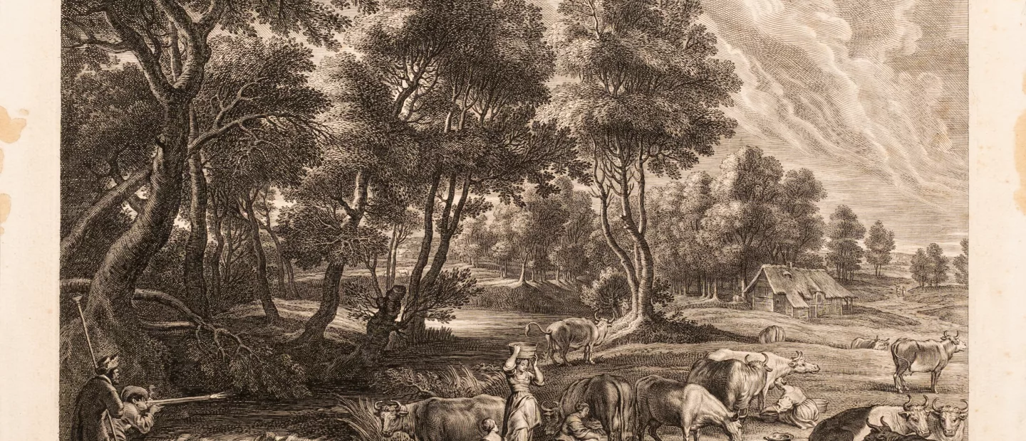 Peter Paul Rubens (1577 Siegen - 1640 Antwerpen): Landschaft um 1638, nach einem Kupferstich von Schelte Adams Bolswert (1586 - 1659)...