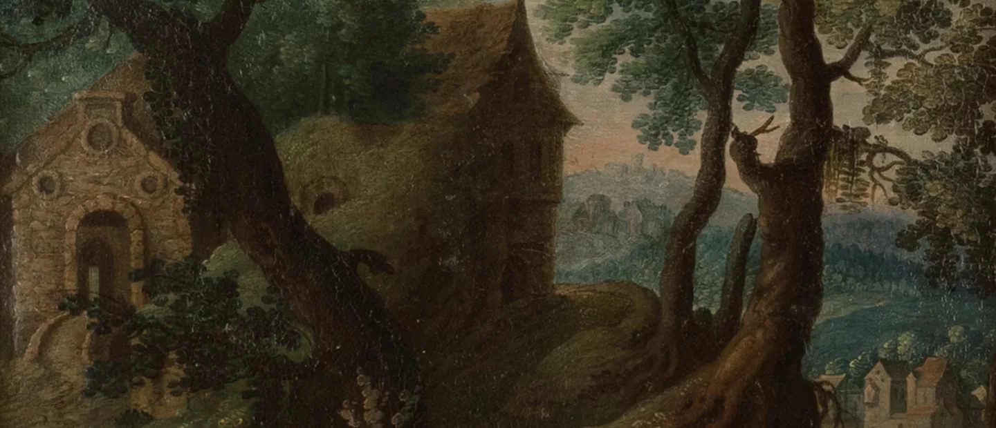 Unbekannter Meister (17. Jh.): Kapelle im Wald, Öl auf Kupferplatte, 23 cm x 22 cm Plattenmaß, 'R' signiert, craqueliert mit...
