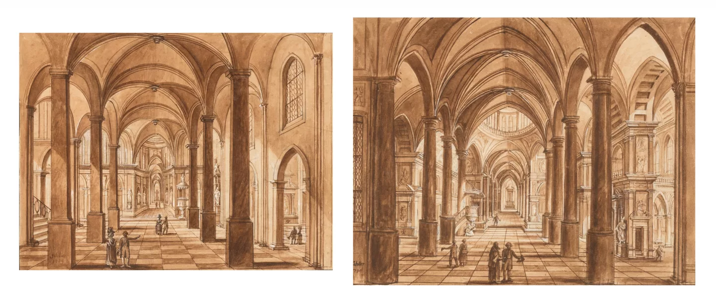 Michael Schlier (1744 Königstein - 1807 Ebenda): Paar Architektur-Zeichnungen, lavierte Pinsel und Feder in sepia, schwarz und weiß...