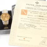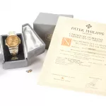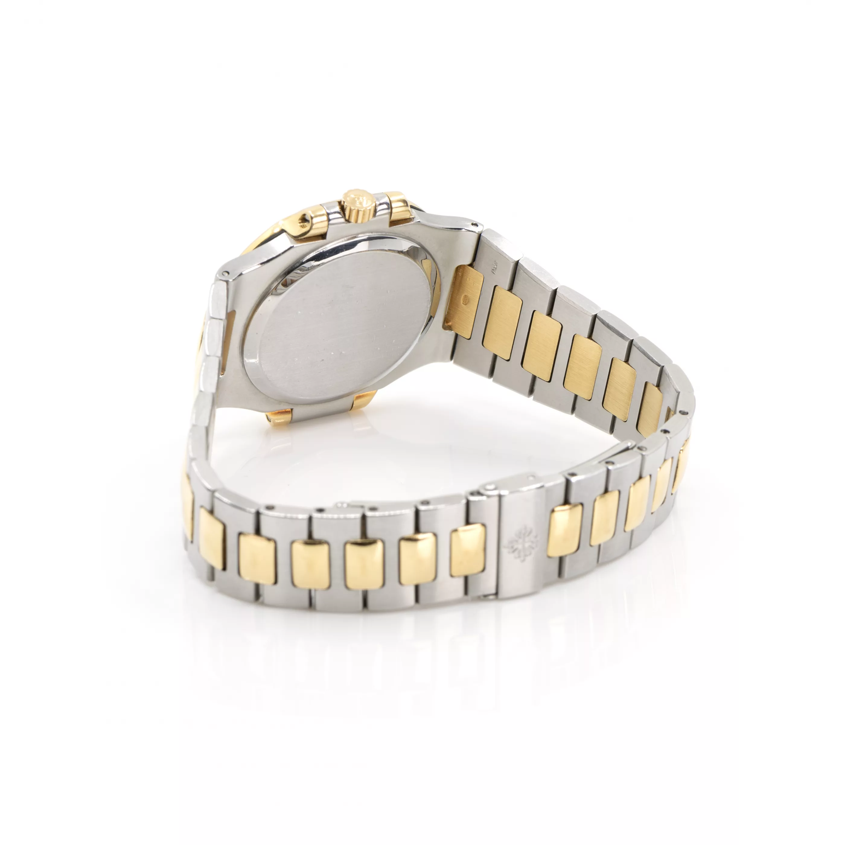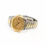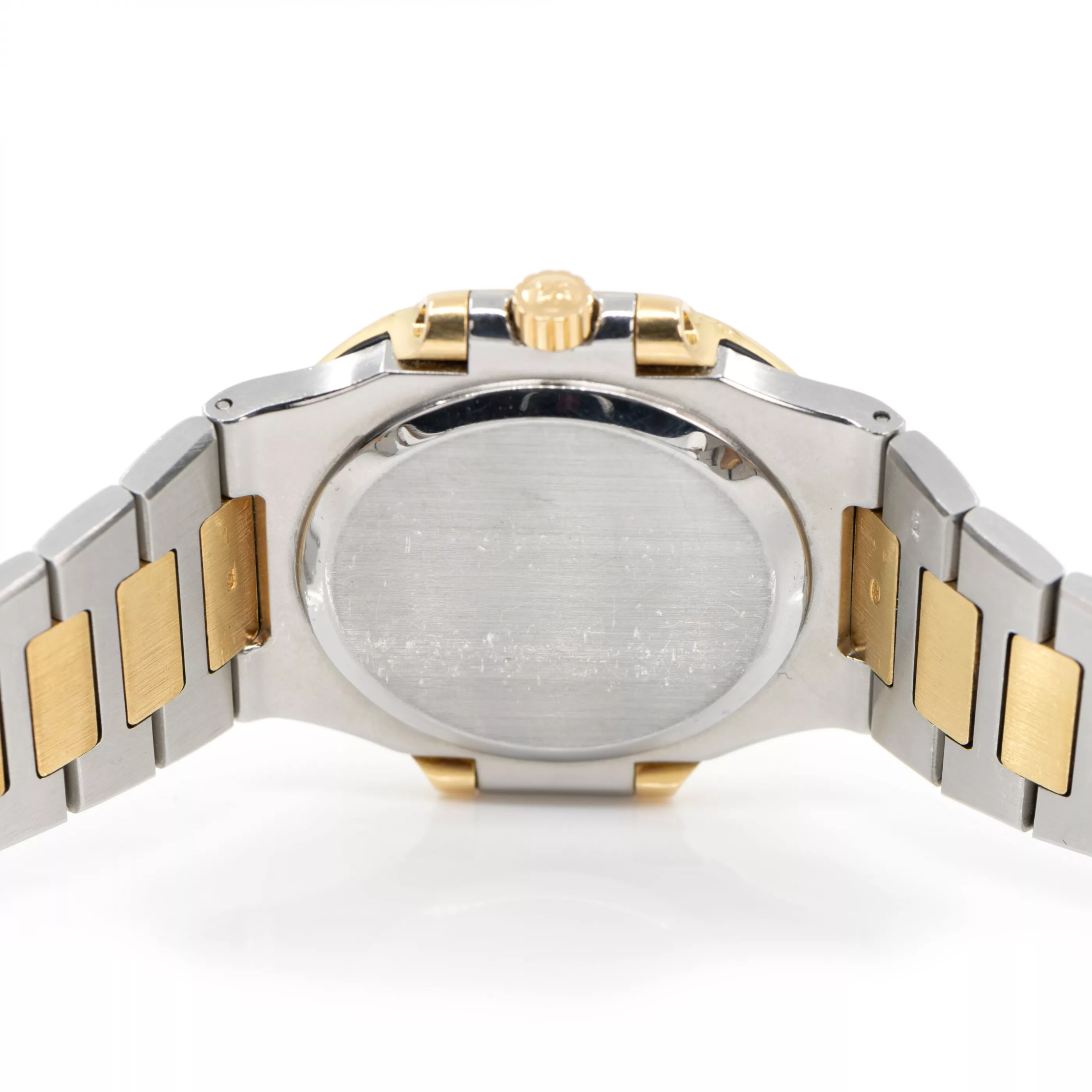 year 1983, automatic, date display, movement no. 1421733 | ref. no. 3800-001, 29 jewels, case steel/750 yellow gold, diameter 37 mm, original strap, steel/750 yellow gold, hallmarked, original folding clasp, steel, length 18 cm, total weight approx. 114,8 g, functional, tested, condition good, strap slightly chipped, traces of wear, condition and functionality tested by our master watchmaker, with original box, outer packaging and papers, outer packaging good, small paint chips, box good, certificate of origin, 2 replacement links enclosed, 1 replacement link corroded, length 1 cm, note: The buyer's premium is 14,28% incl. VAT. For the use of the online bidding consoles there is an additional fee of 3% plus VAT (3.57%).