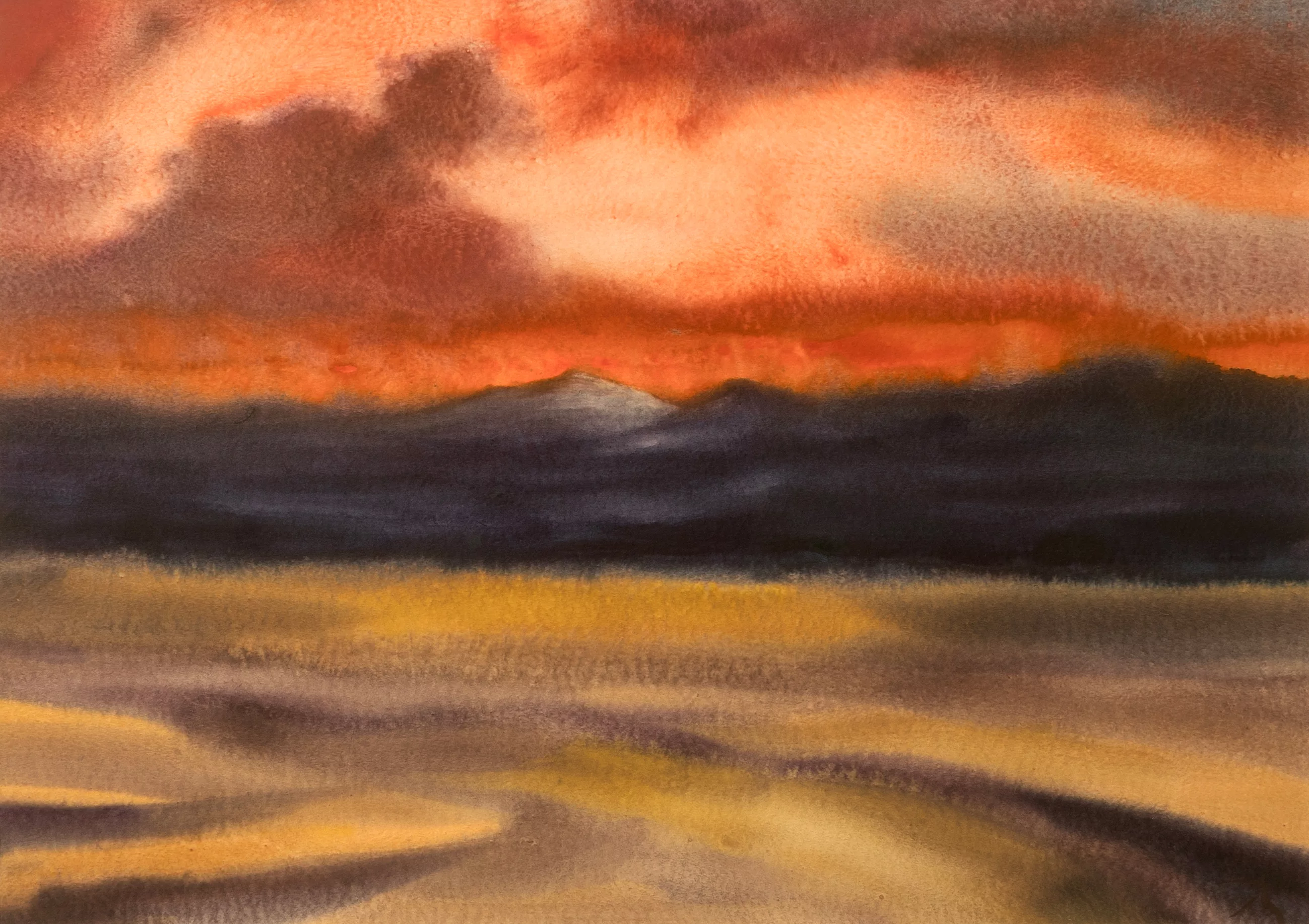 Landscape in Chiemgau, watercolour on paper, 48 cm x 67.5 cm, visible dimensions, monogrammed
