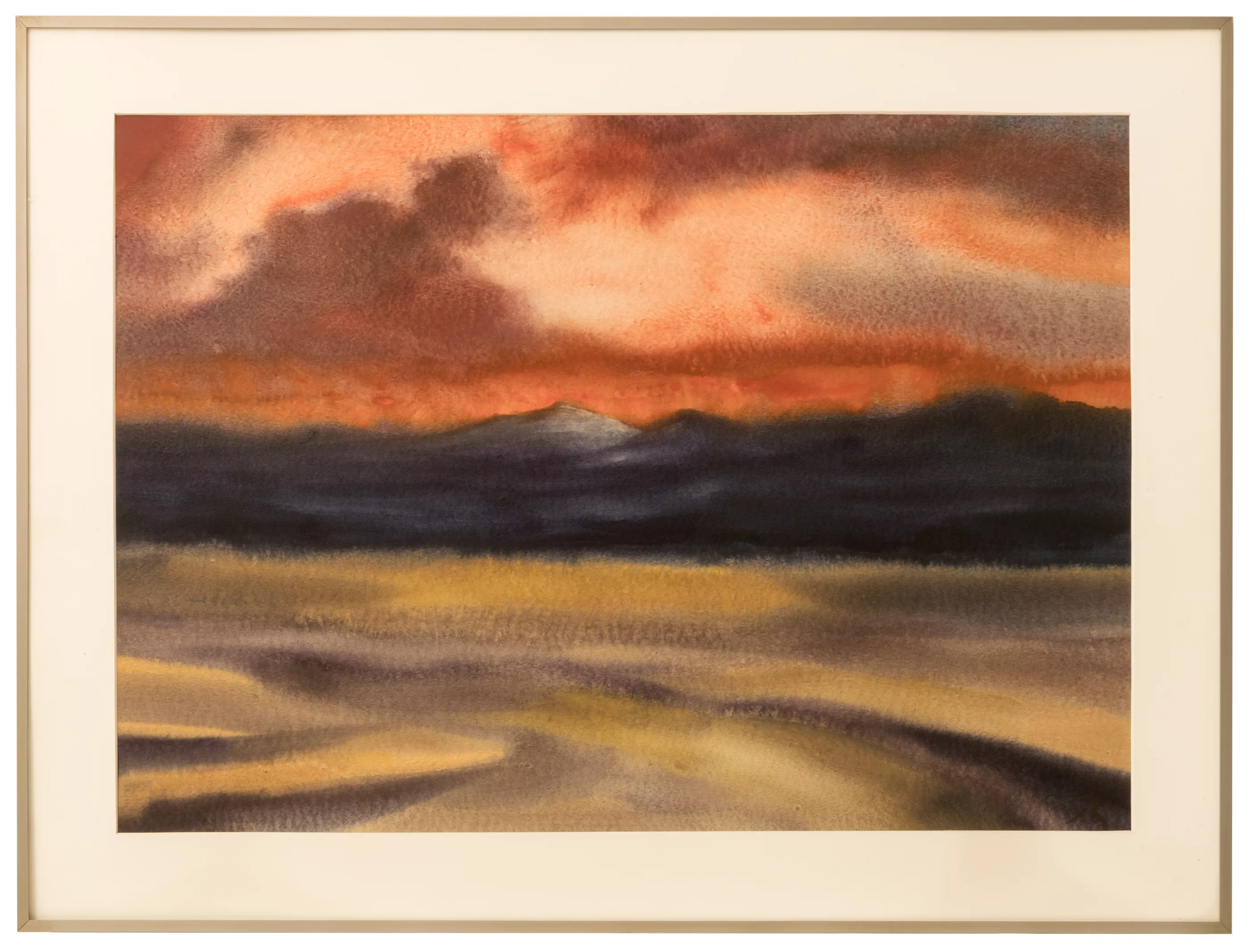 Landschaft im Chiemgau, Aquarell auf Papier, 48 cm x 67,5 cm Sichtmaß, monogrammiert