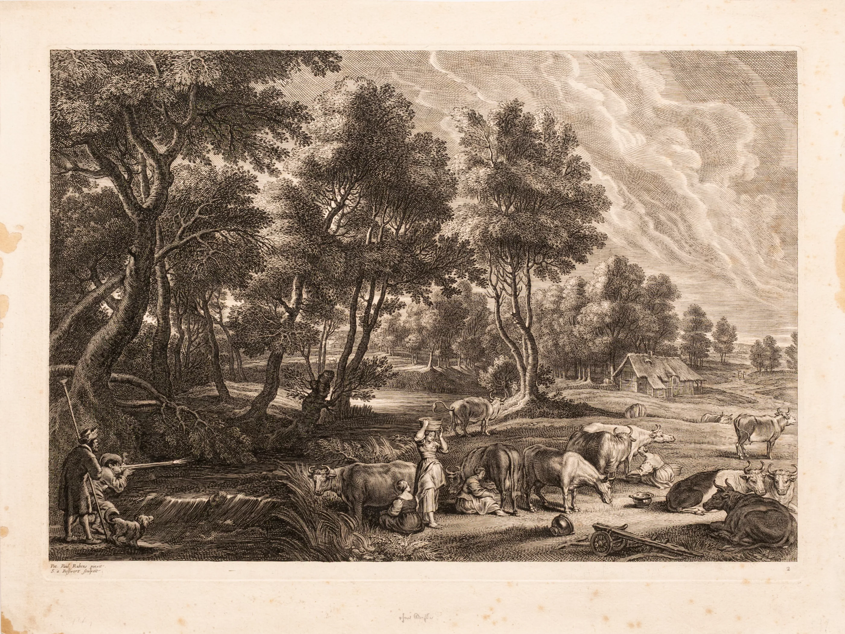 Landscape c. 1638, copperplate after an engraving by Schelte Adams Bolswert (1586 - 1659) on paper, 38 cm x 50.5 cm sheet dimensions, paper browned, partially stained, partially inscribed in pencil