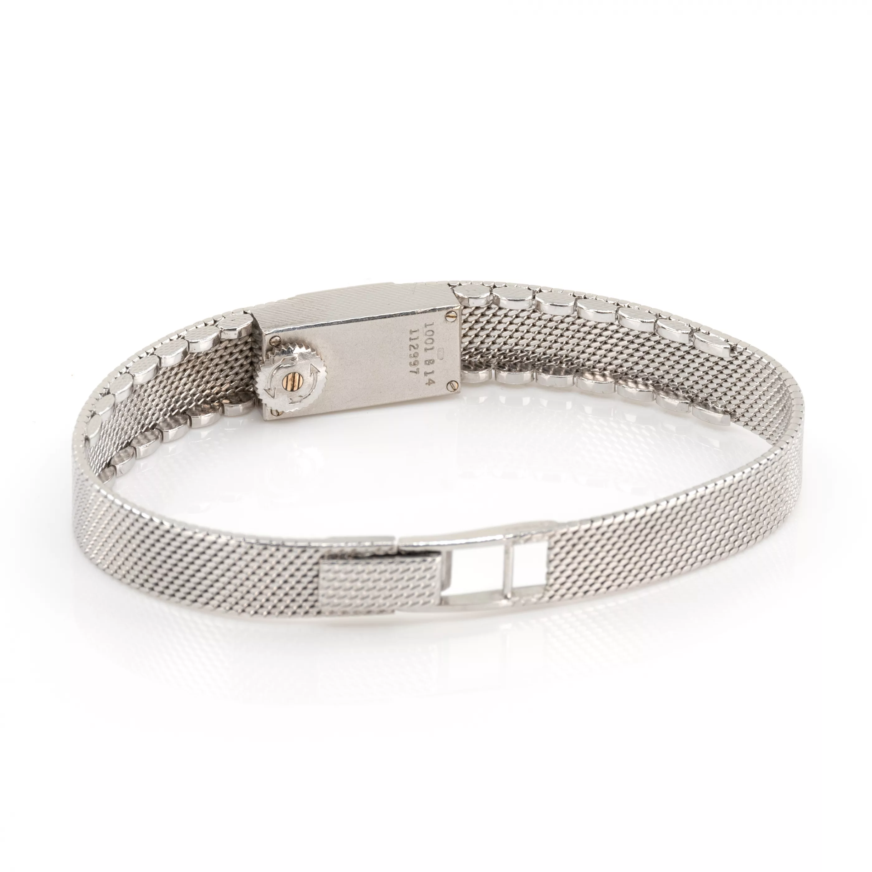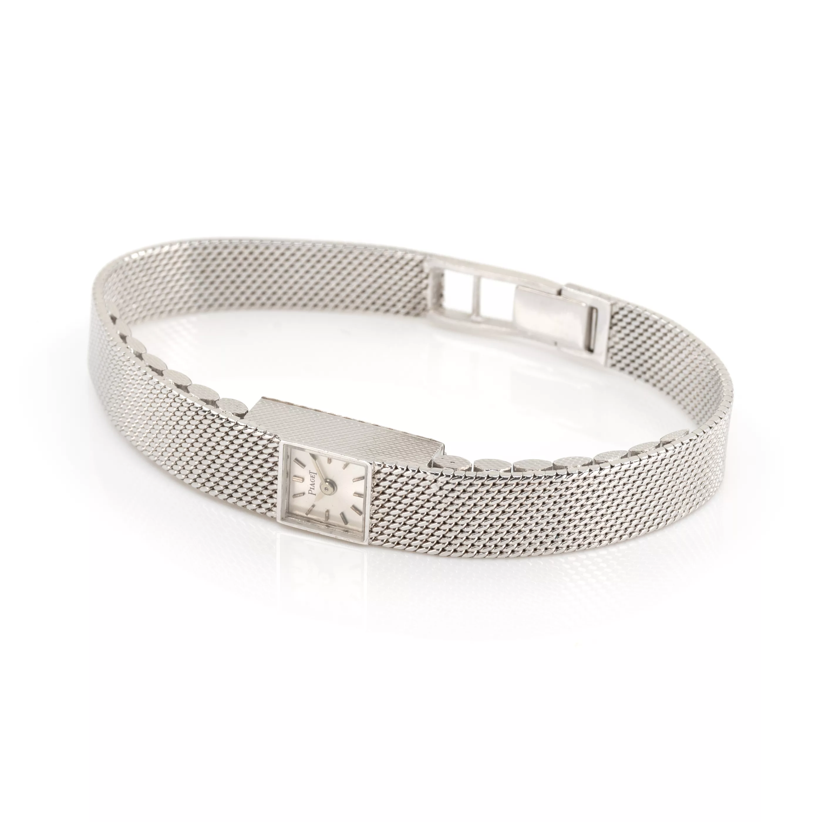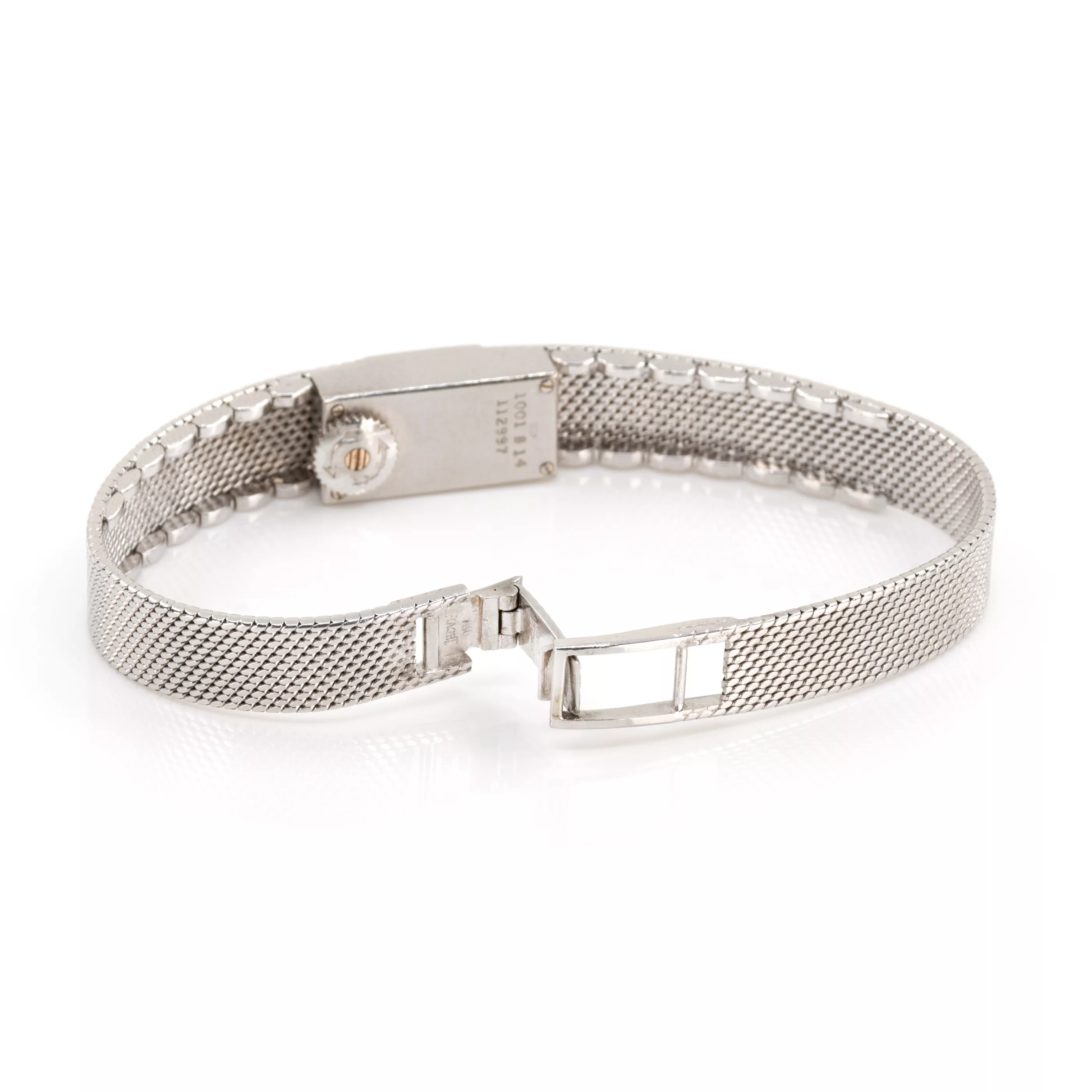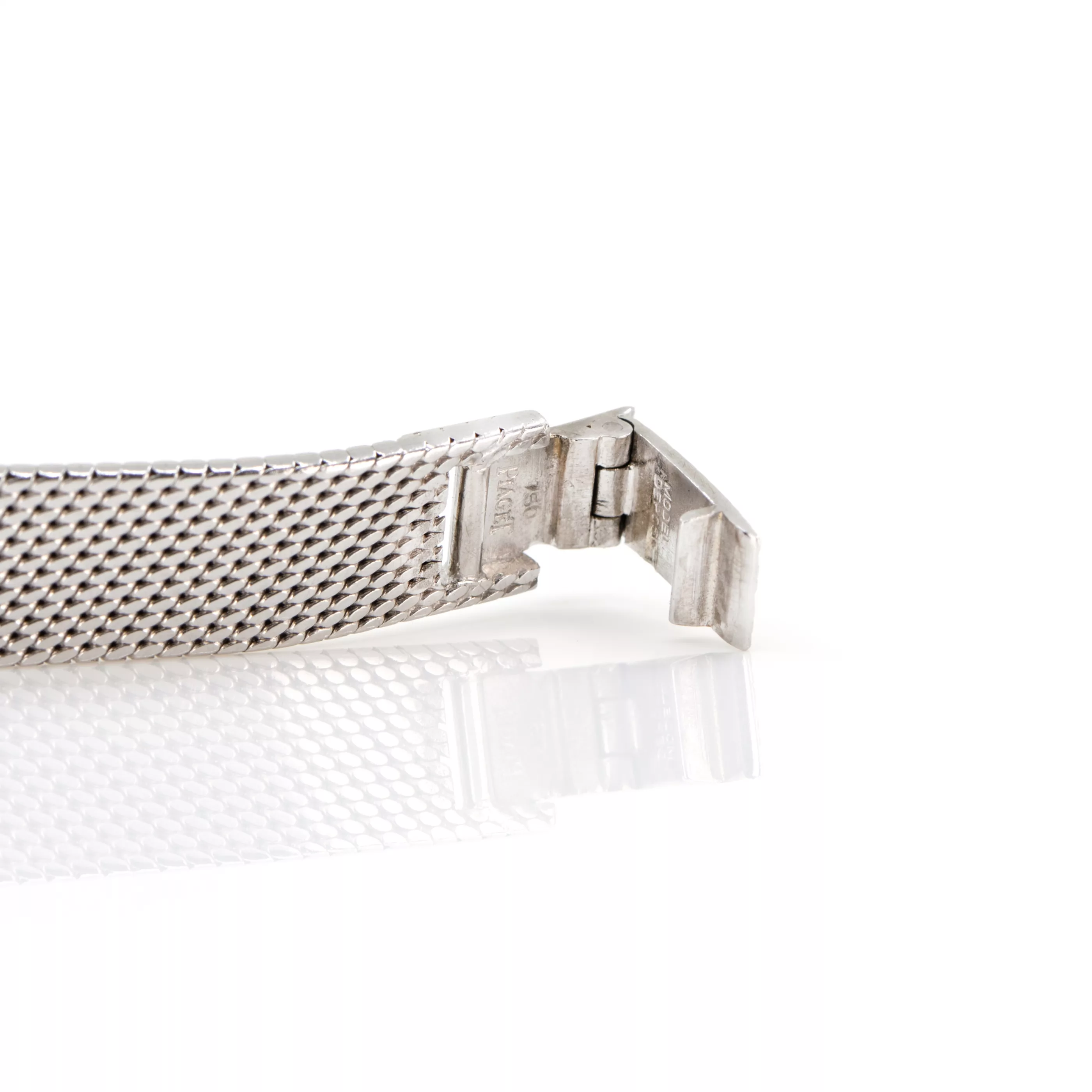 1960s, manual winding, case no. 112997 | reference no. 1001 B14, case 750 white gold, hallmarked, dimensions 10 mm x 10 mm, original Milanese bracelet, 750 white gold, original clasp, 750 white gold, hallmarked, length 17.5 cm, total weight approx. 32.8 g, function tested, working, condition good, bracelet slightly creased, without original box or papers