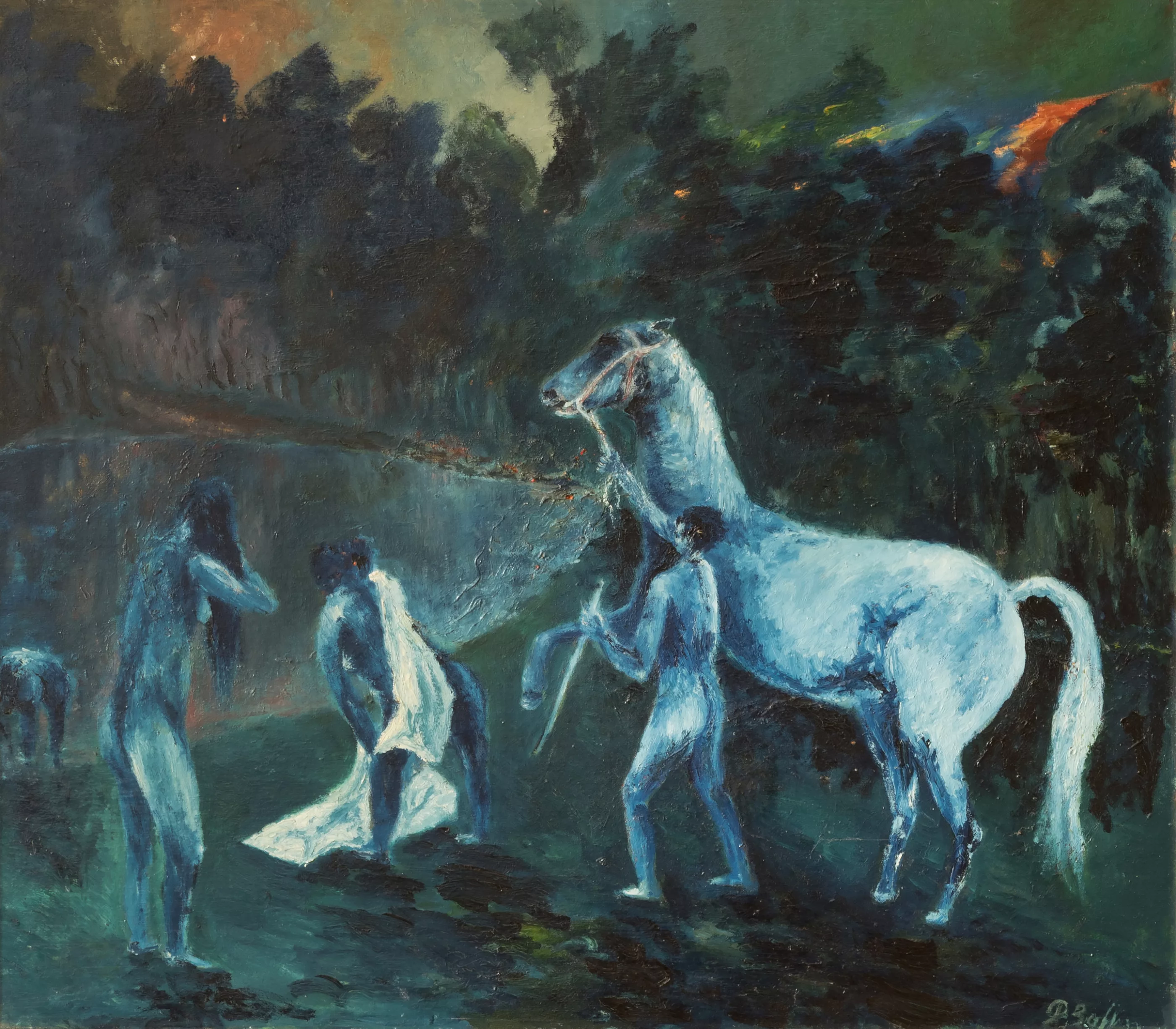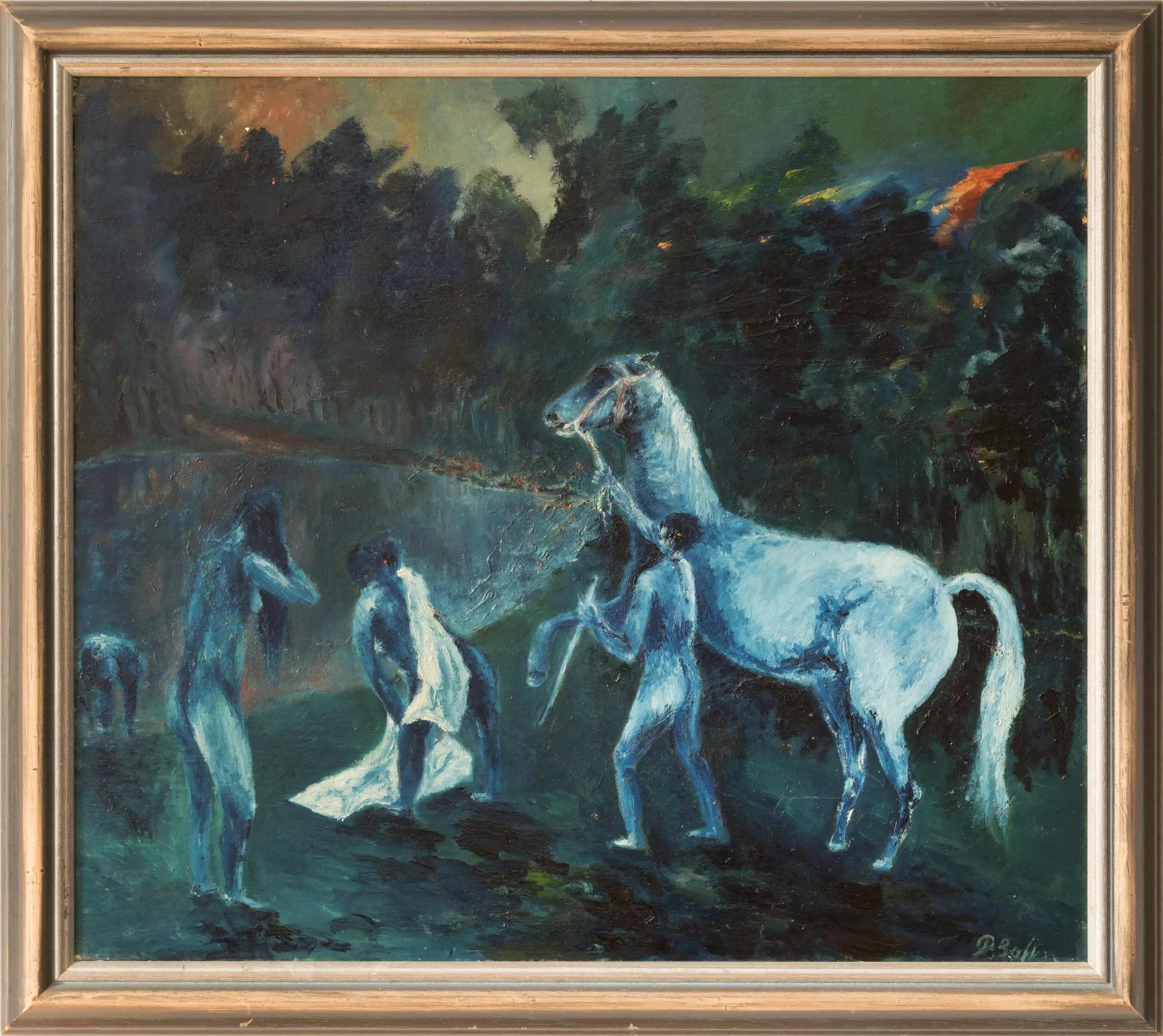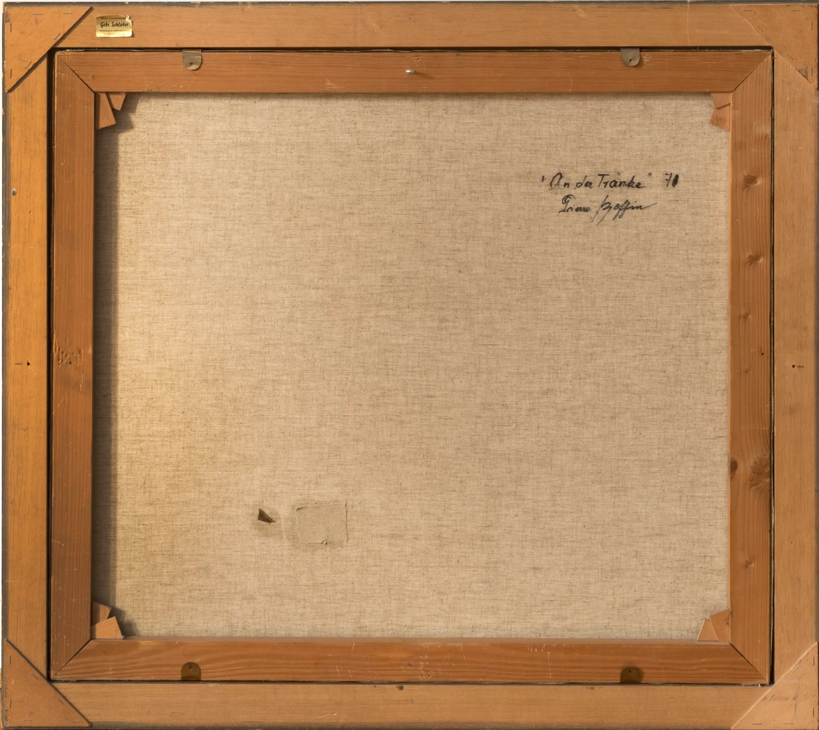 'An der Tränke', oil on canvas, 71 cm x 80 cm canvas dimensions, signed, signed on the verso, dated 70, titled, slightly craquelured, small paint chips, partially retouched, glued on the verso in two places