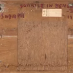 'Sunrise over Bangla Desh', Mischtechnik auf Holz, 49 cm x 67 cm Werkmaß, signiert, verso signiert, betitelt, partiell Abplatzer, Rahmen am Rand abgebrochen, Provenienz: Gallery Chemould, Bombay (verso Galerieetikett)