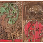 'Witness of Beginning', mixed media with wood, 82 cm x 102 cm object dimensions, signed, dated 78, partial flaking, frame broken off at the edge, provenance: Gallery Chemould, Bombay (verso gallery label)