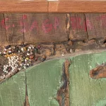 'Witness of Beginning', Mischtechnik mit Holz, 82 cm x 102 cm Werkmaß, signiert, 78 datiert, partiell Abplatzer, Rahmen am Rand...