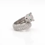 Raubkatzenring mit Brillantbesatz750 Weißgold, geprüft, ca. 250 Diamanten im Brillantschliff, gesamt ca. 5,00 ct, G-H, vvs-si, 2 Smaragde...