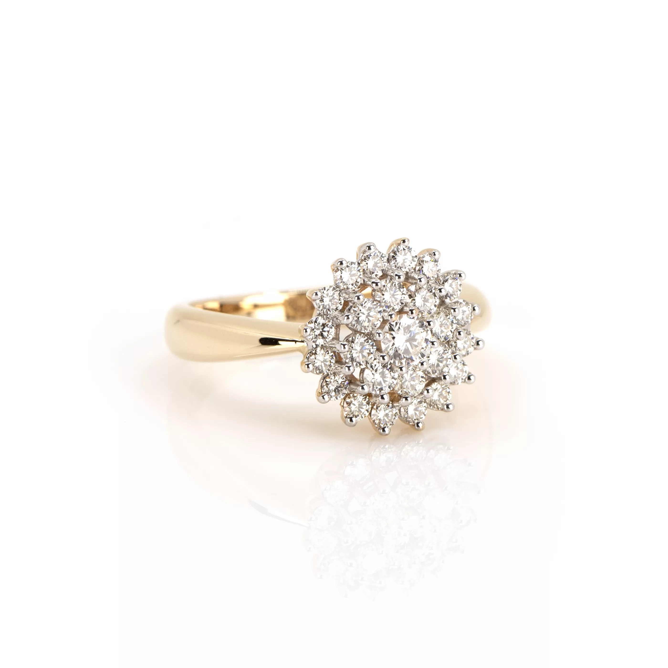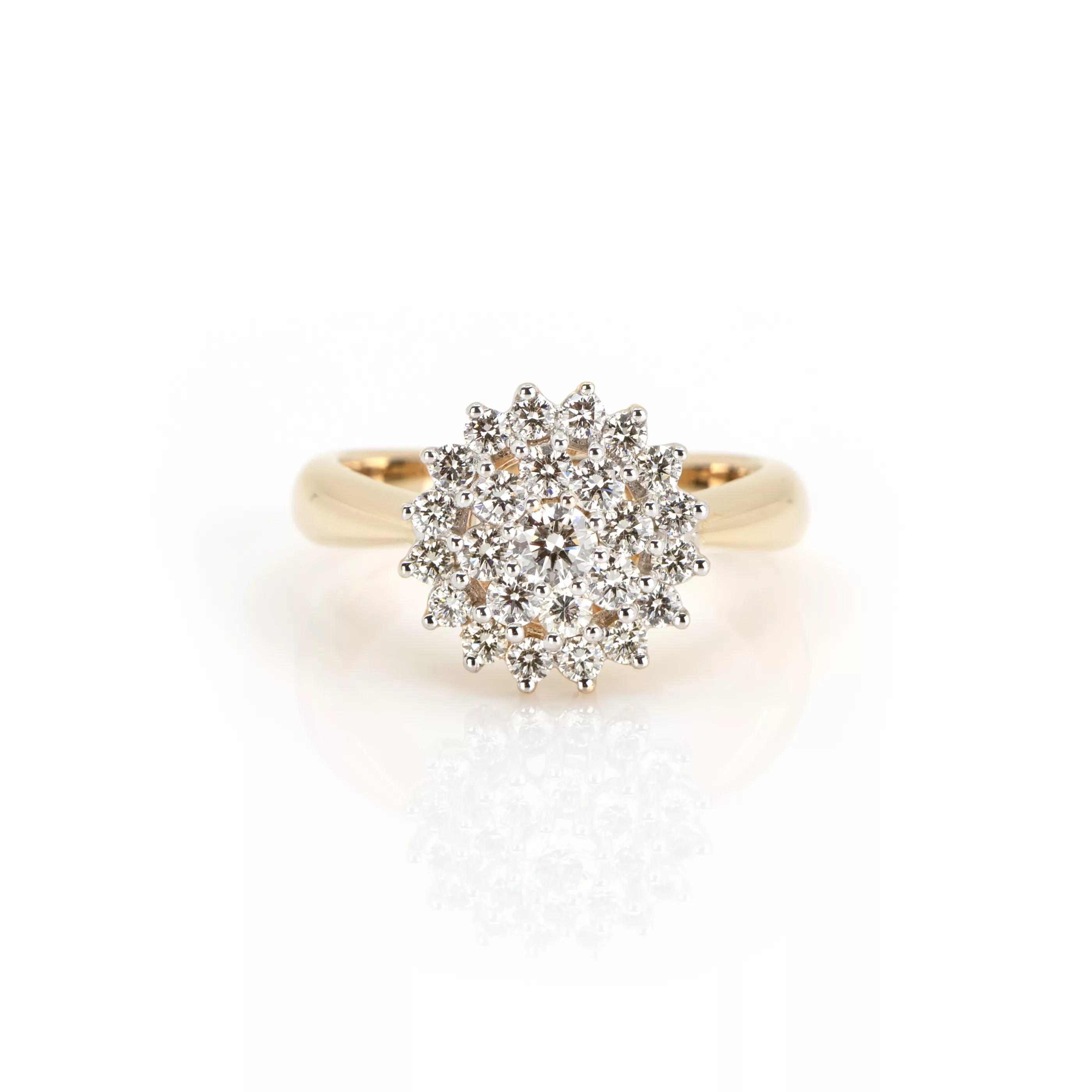 585 yellow gold, hallmarked, 25 brilliant-cut diamonds, total approx. 1.08 ct, I-J, vvs, RW 57, weight approx. 6 g