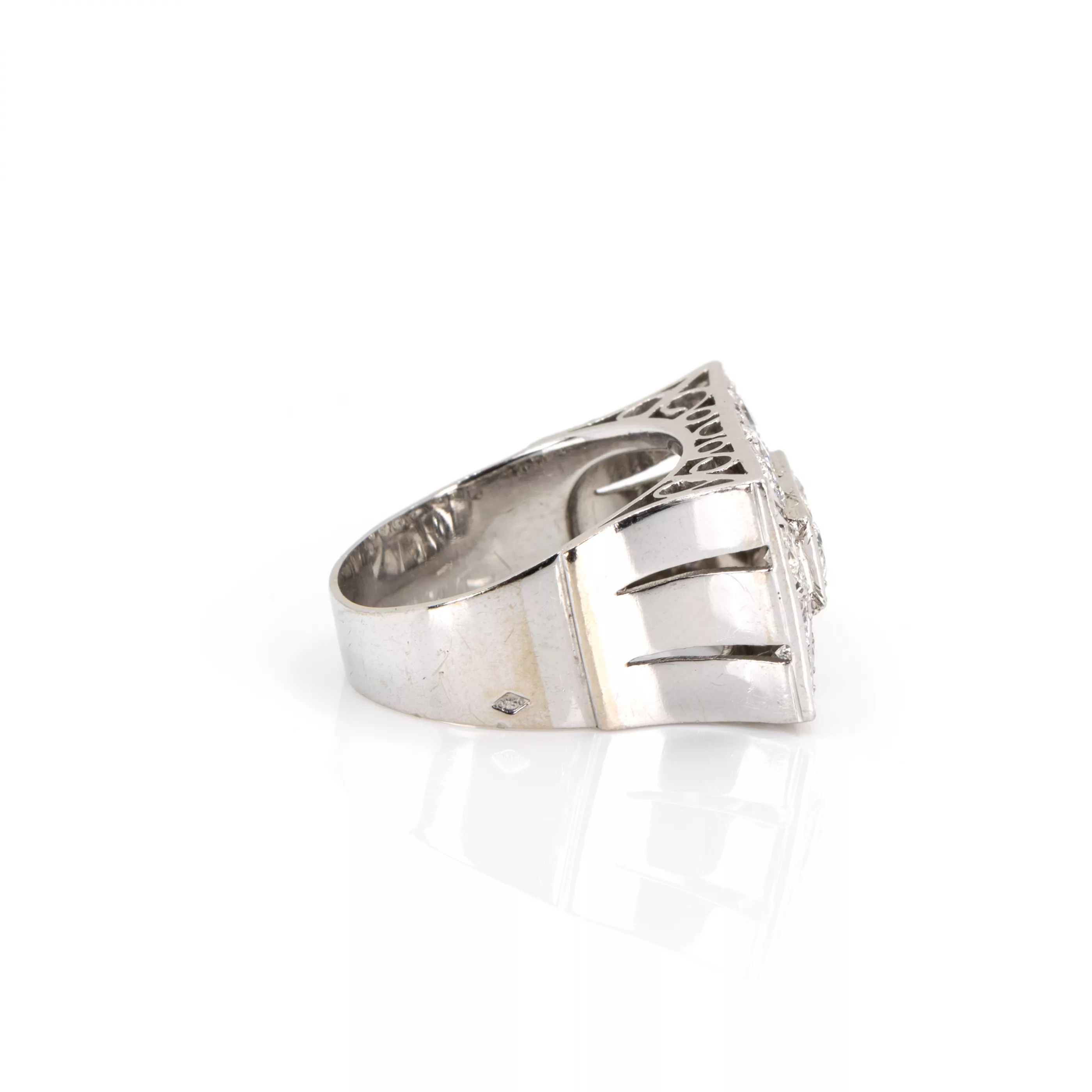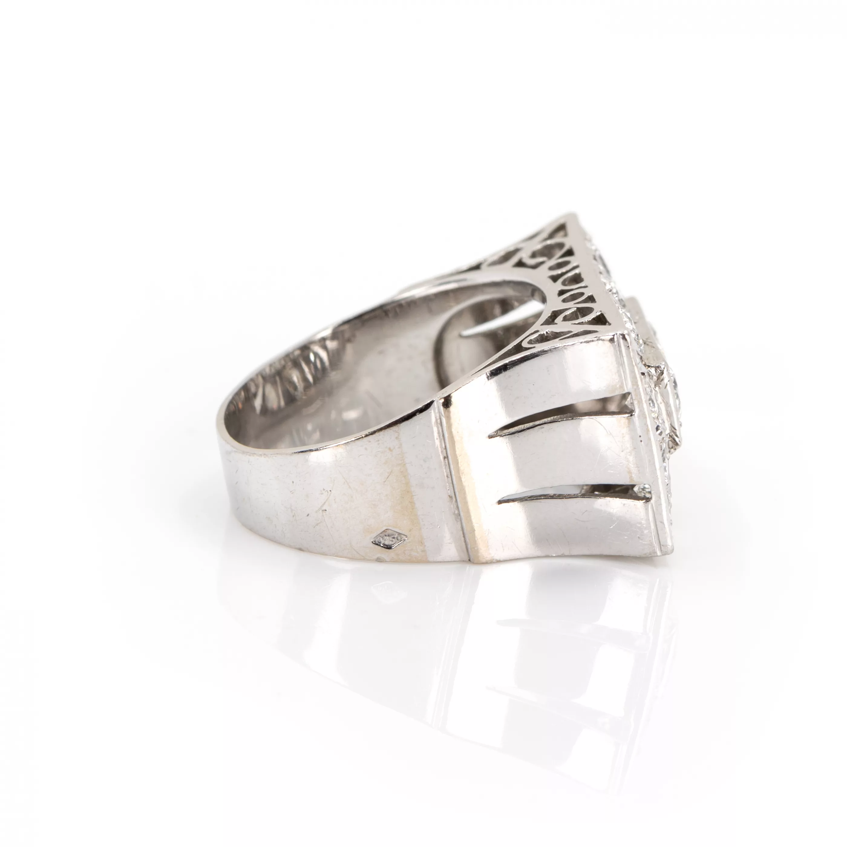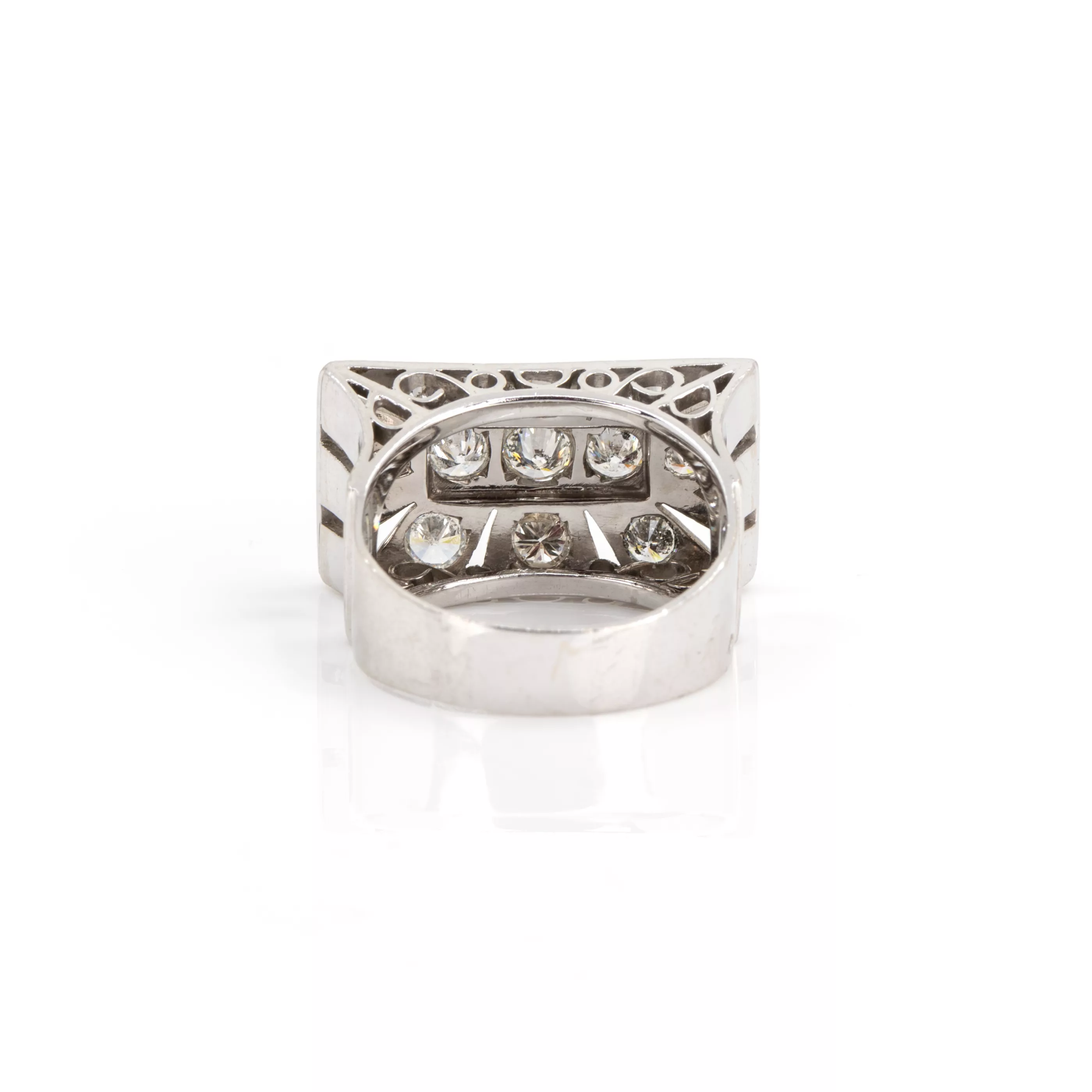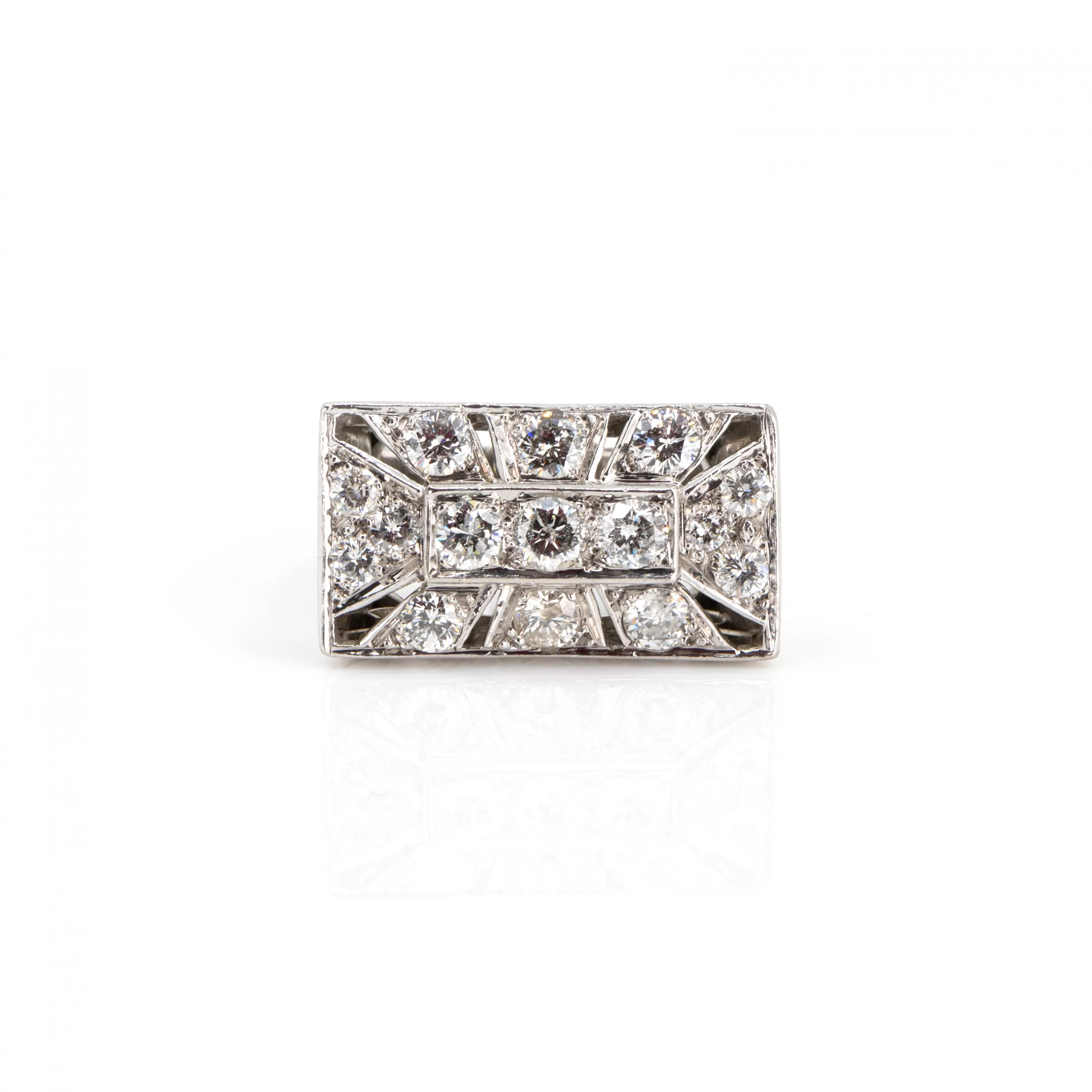 750 Weißgold, punziert, 15 Diamanten im Brillantschliff, gesamt ca. 2,40 ct, G-H, si-pi, RW 63, Gewicht ca. 13 g