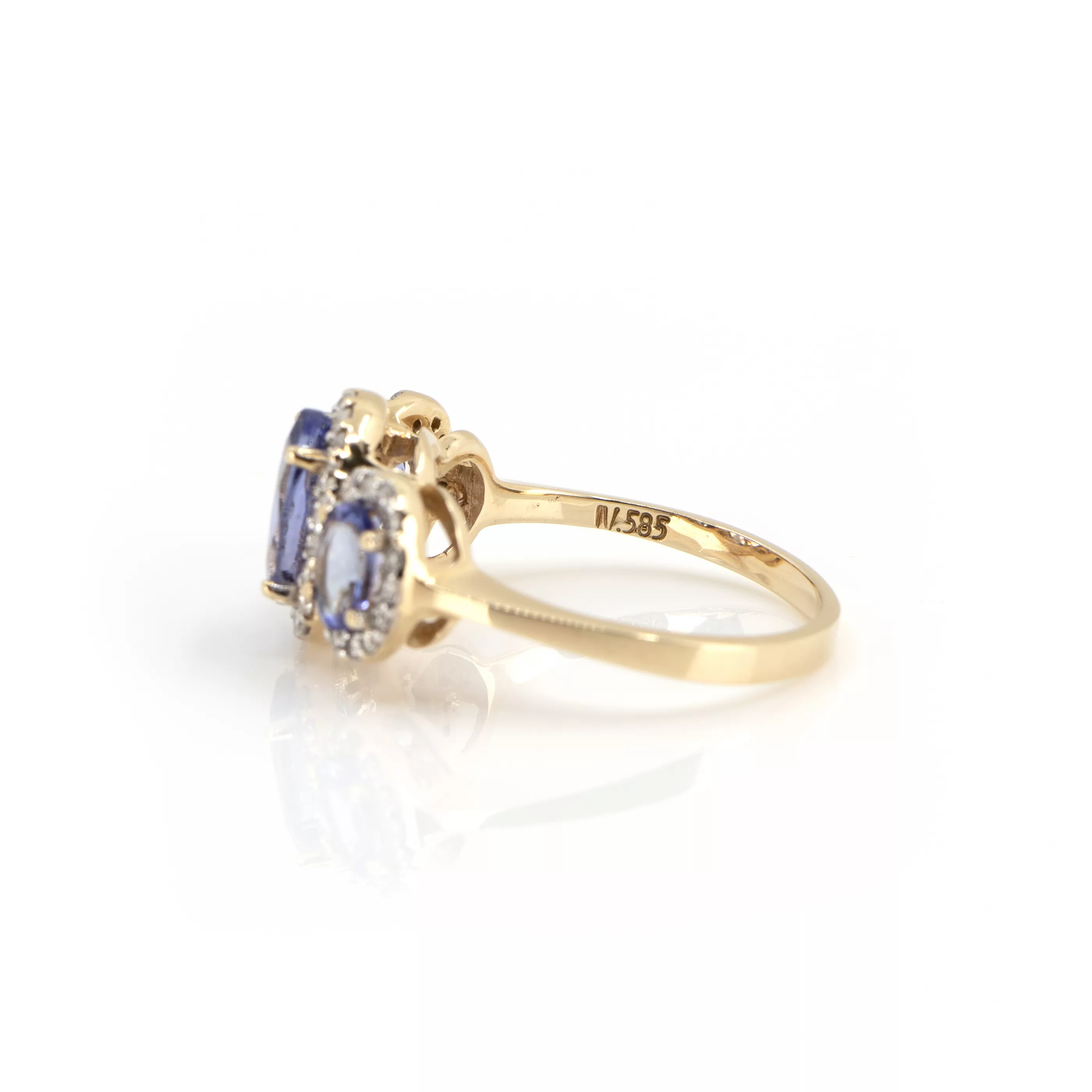 585 yellow gold, hallmarked, 42 brilliant-cut diamonds, total approx. 0.42 ct, I-J, pi, 3 oval faceted tanzanites, total approx. 3.00 ct, RW 56, weight approx. 4.8 g