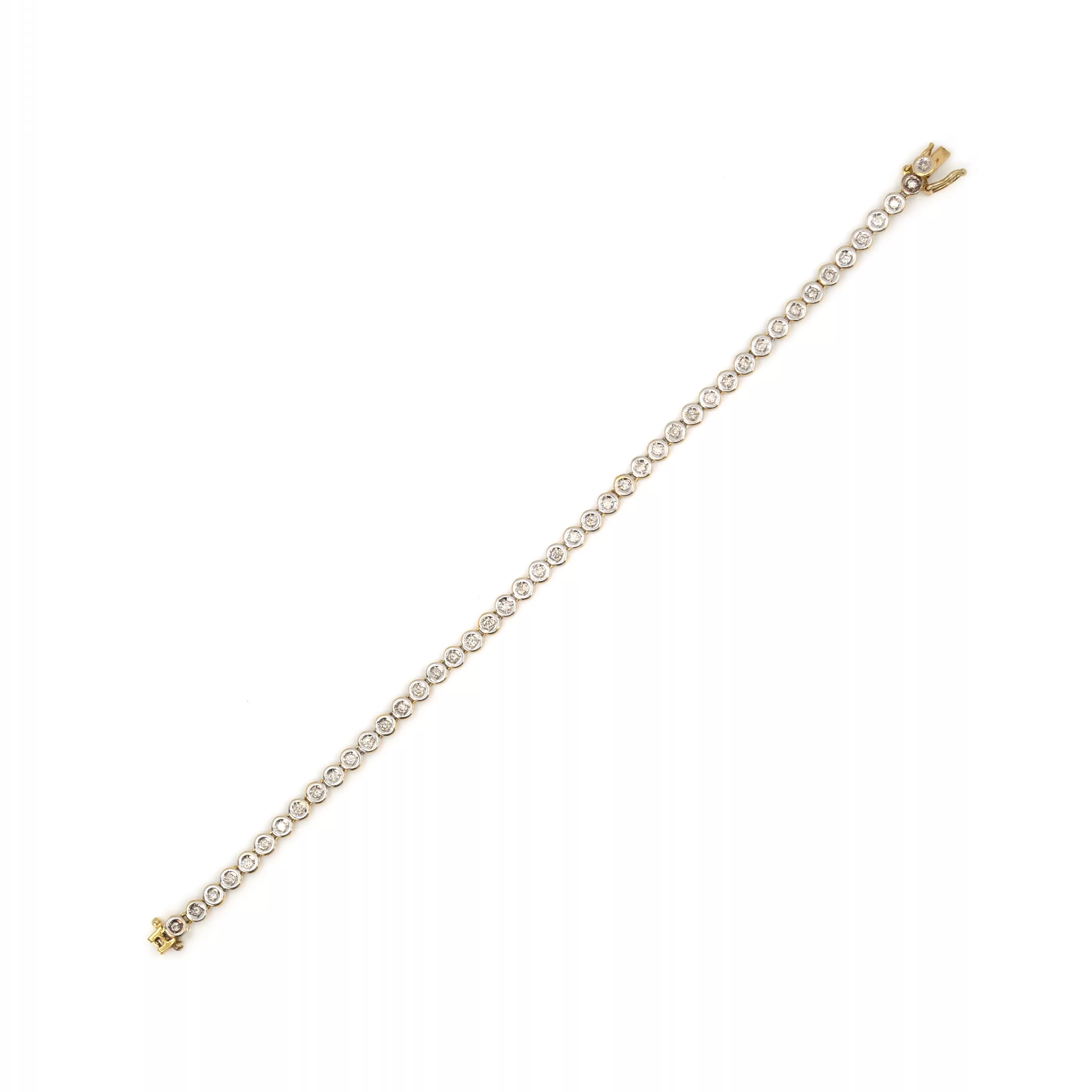 750 Gelb- und Weißgold, punziert, 45 Diamanten im Brillantschliff, gesamt 1,00 ct, punziert, J, si-pi, Länge 18,5 cm, Gewicht ca. 9,8 g, Expertise von 2001 anbei