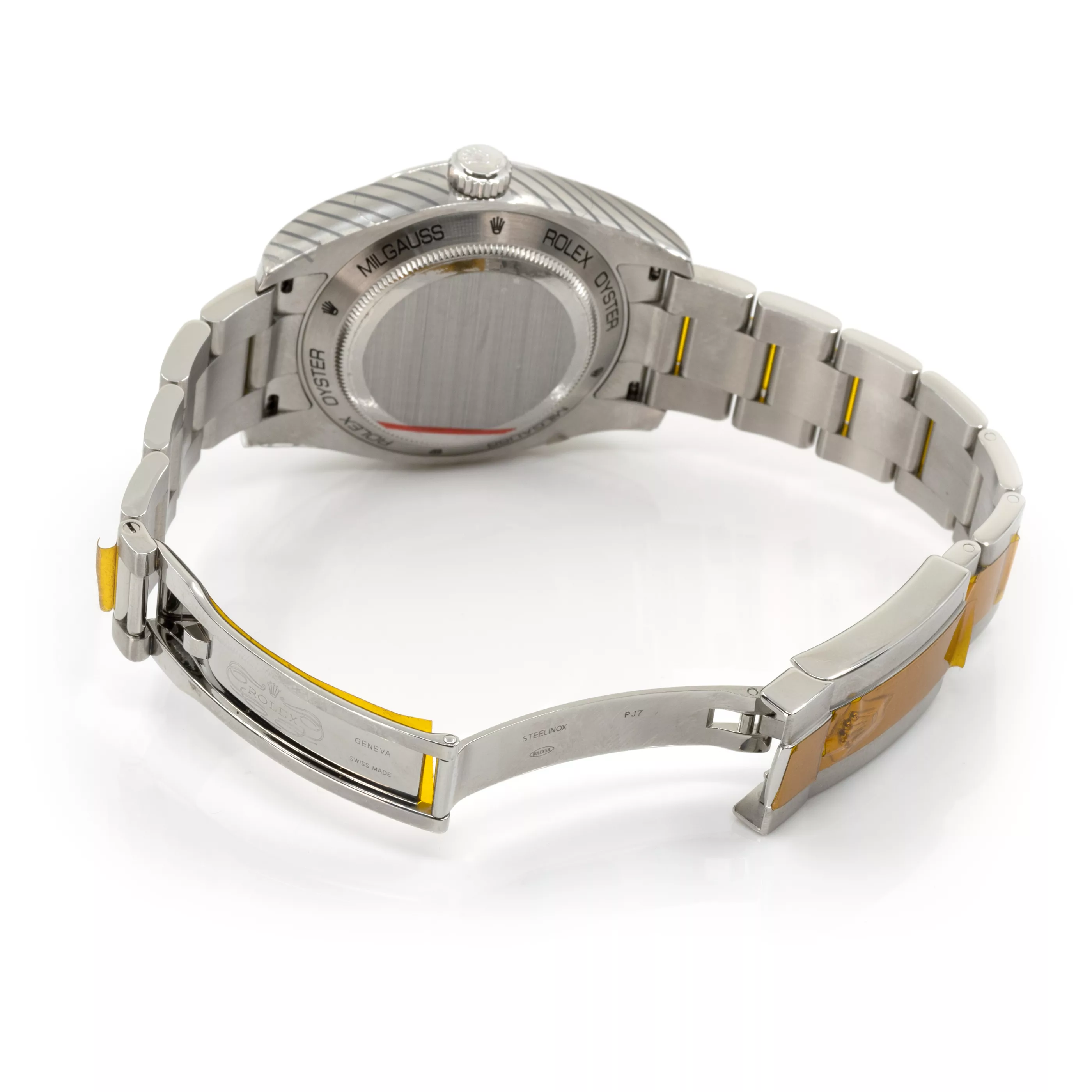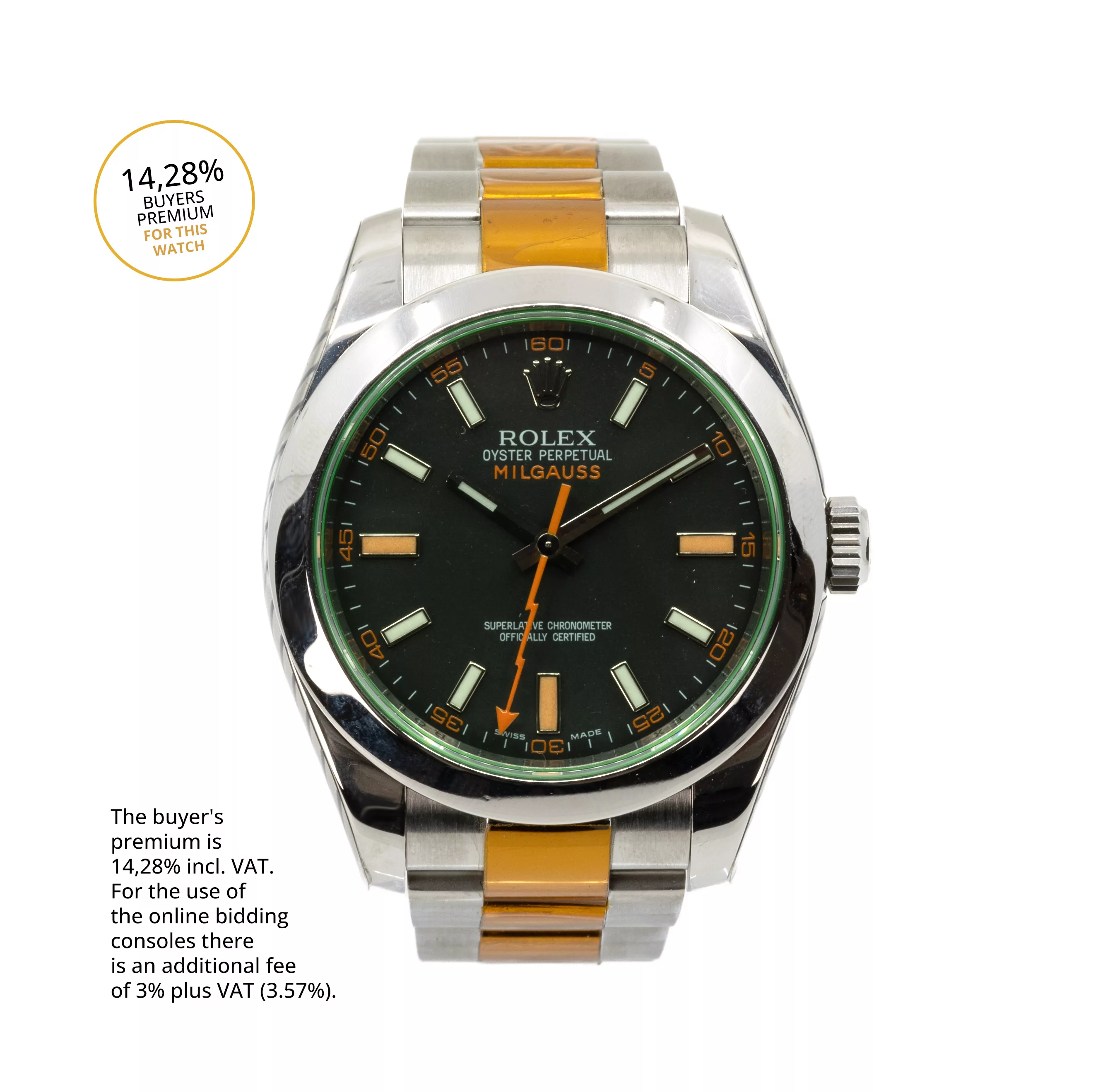 Full set, year 2009, automatic, green sapphire crystal, lightning-shaped second hand, luminous hands, luminous indices, serial no. V381542 | Ref. No. 116400GV, steel case, diameter 40 mm, original bracelet, steel, with diver's extension, original folding clasp, steel, length 17 cm, total weight approx. 150 g, working, tested, revised (2016), case, bracelet and clasp originally glued after revision, condition good, condition and functionality tested by our master watchmaker, with original box, outer packaging and papers, outer packaging good, box good, original case with guarantee card, operating instructions, guarantee booklet, 2 spare links enclosed, length 2 cm, note: The buyer's premium is 14.28% incl. VAT. There is an additional fee of 3% plus VAT (3.57%) for using the online bidding consoles.