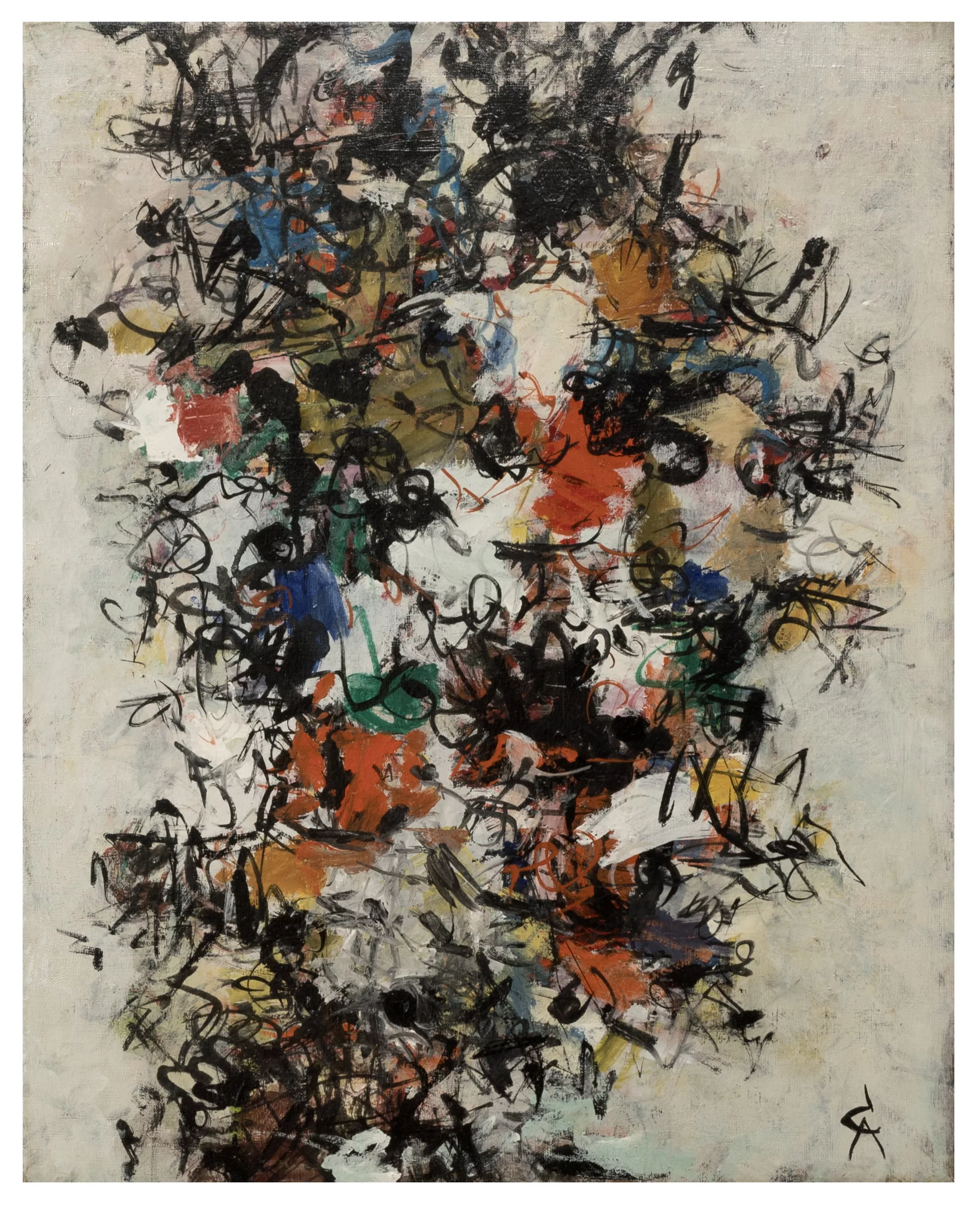 '64/Jn.6', oil on canvas, 60 cm x 45 cm canvas dimensions, monogrammed, signed, titled on verso, exhibitions: 21.3.1981, Fritz-Winter-Haus Ahlen (exhibition label on verso)