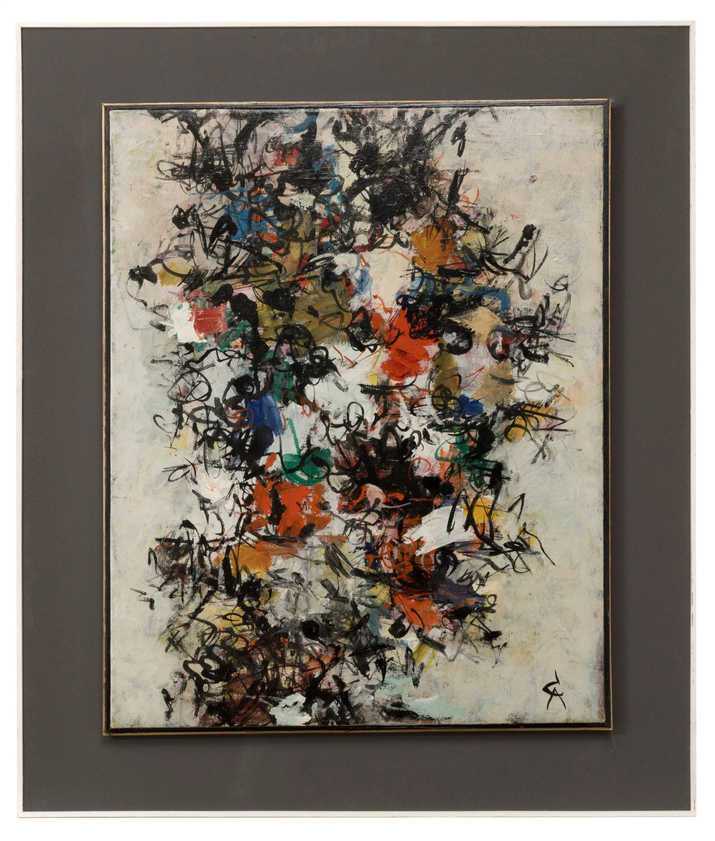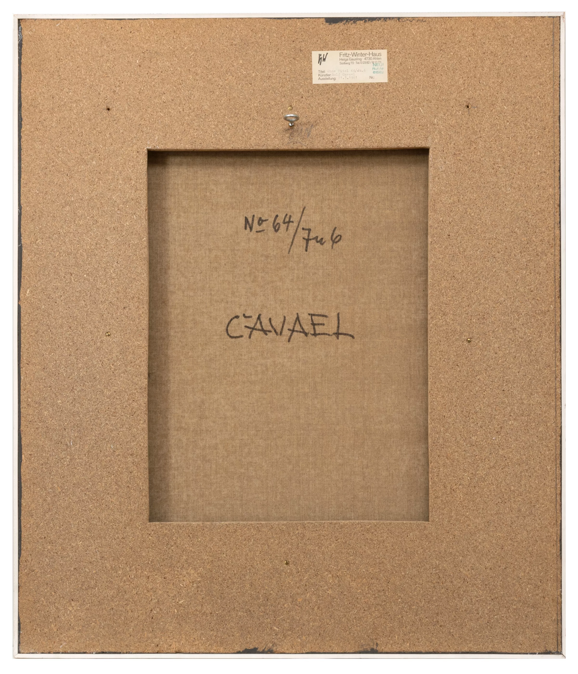 '64/Jn.6', Öl auf Leinwand, 60 cm x 45 cm Leinwandmaß, monogrammiert, verso signiert, betitelt, Ausstellungen: 21.3.1981, Fritz-Winter-Haus Ahlen (verso Ausstellungsetikett)