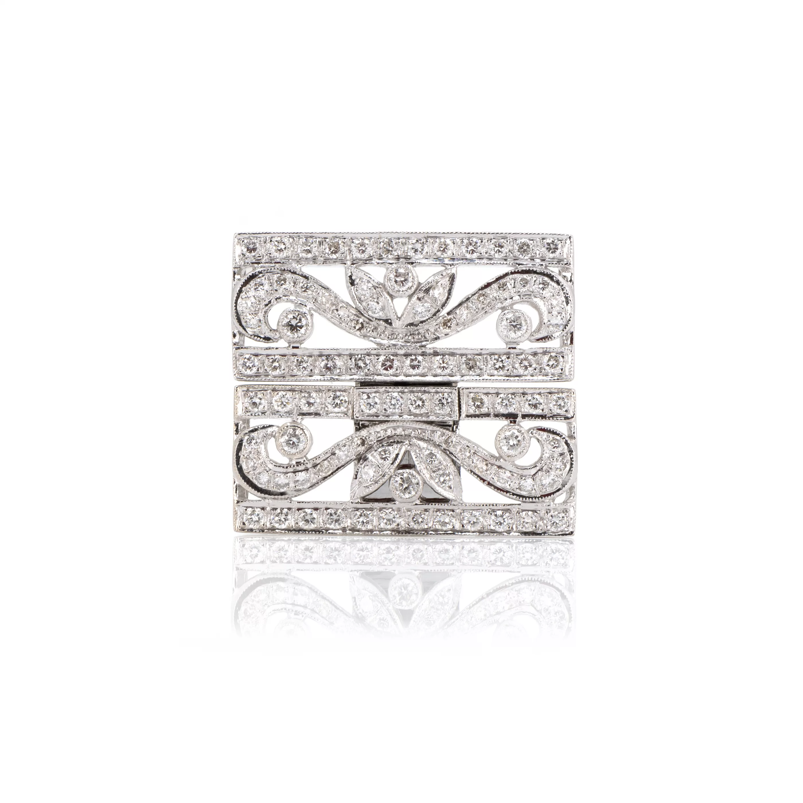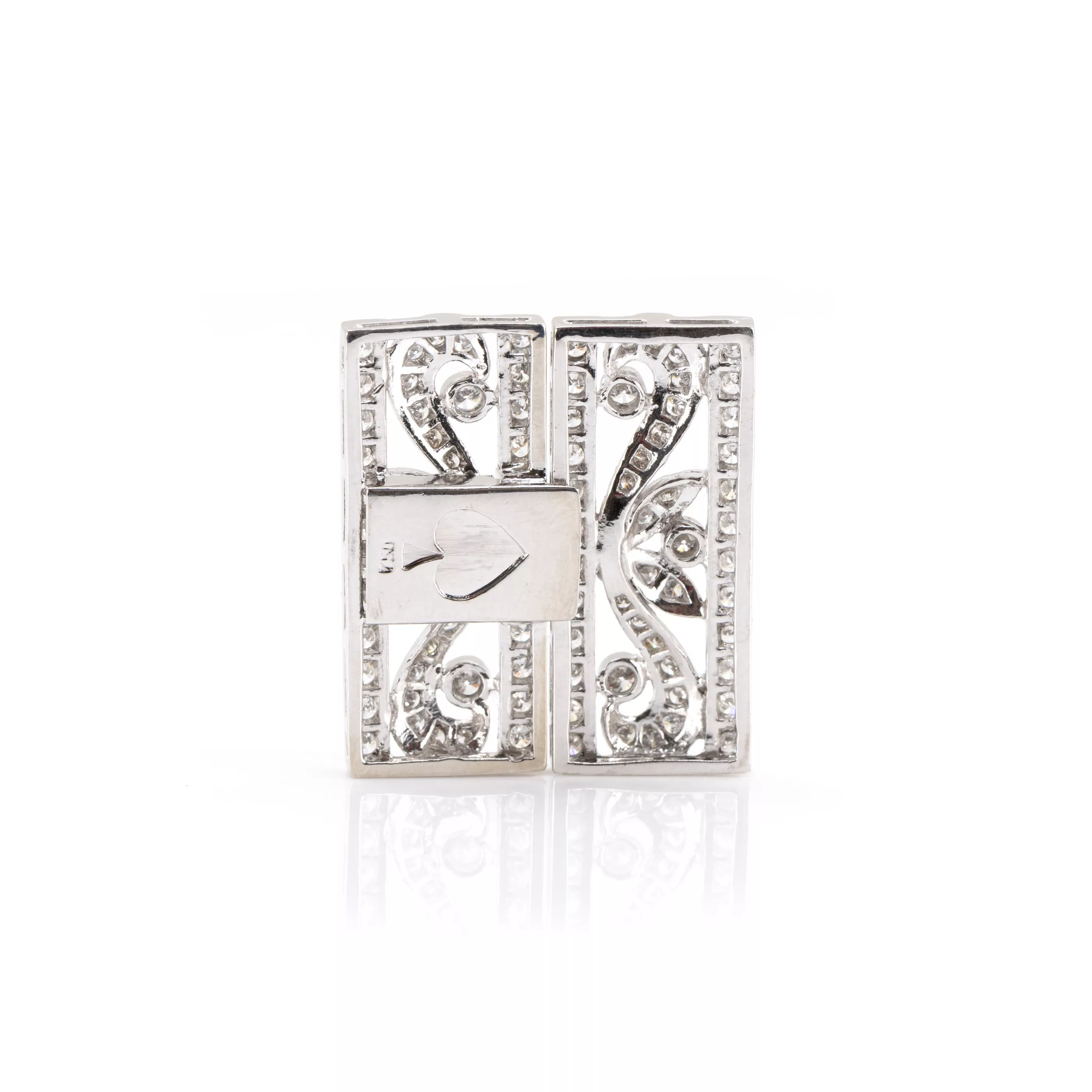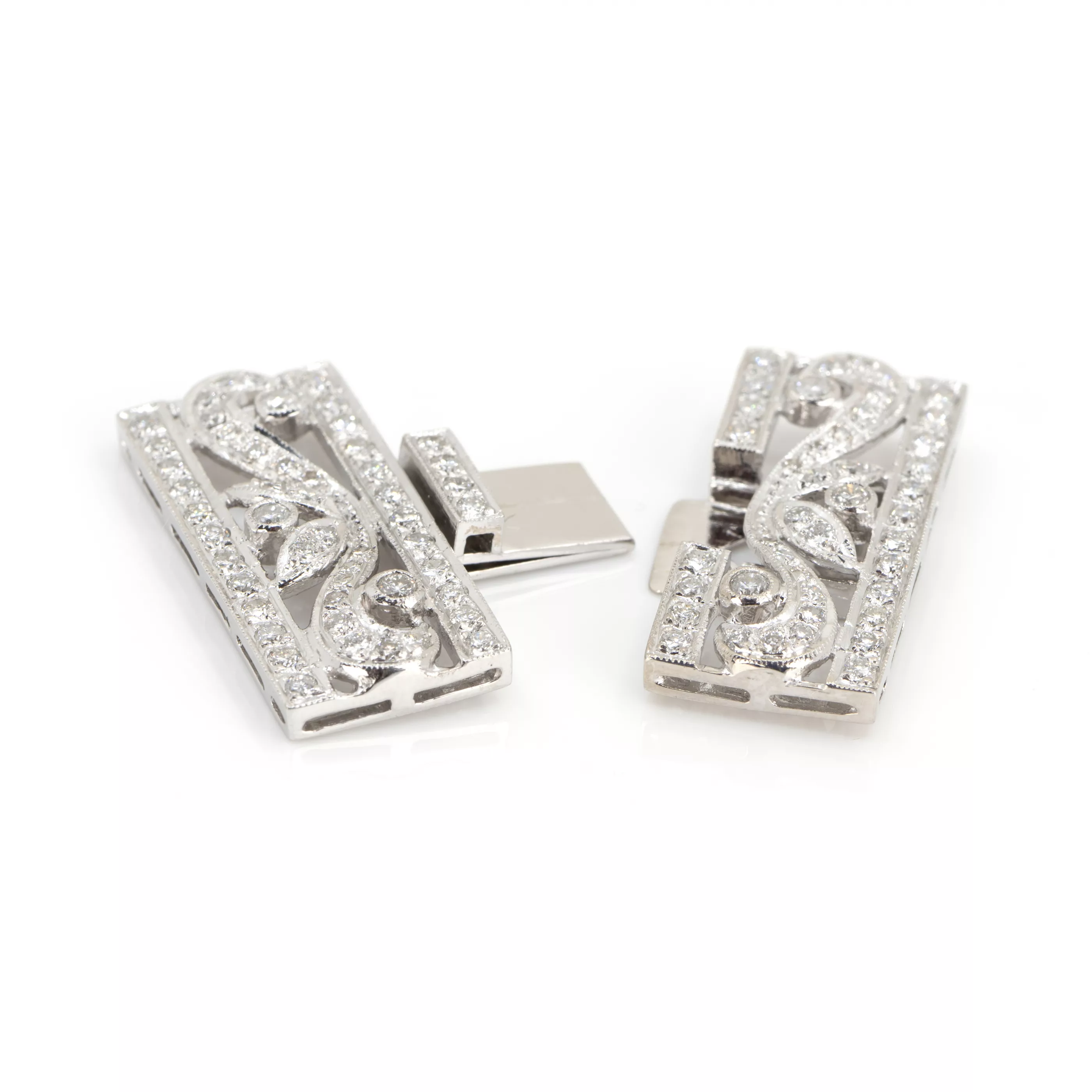 750 white gold, hallmarked, square clasp with brilliant-cut diamonds, total approx. 2.00 ct, H, vs-si, 2.5 cm x 2.7 cm, weight approx. 12.7 g