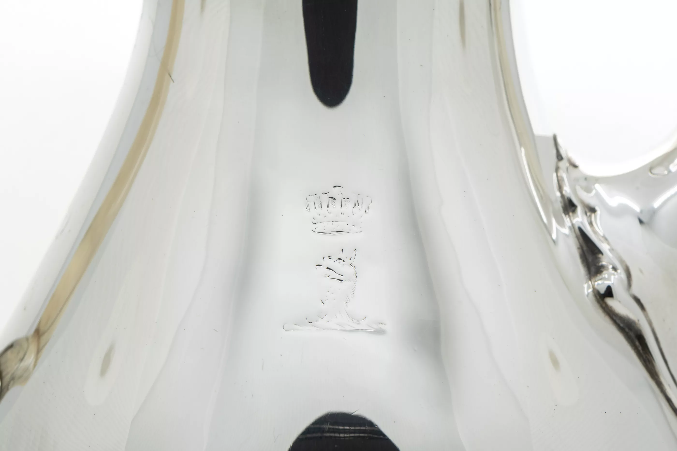 Garrard & Co. Ltd, England, London, 1848, 925 silver, hallmarked, hallmark of fineness, town mark, year letter, Queen Victoria mark, hallmark, pear-shaped body with strawberry lid knob and leg handle, height 26 cm, weight approx. 869 g, partially dented, lid no longer closes completely