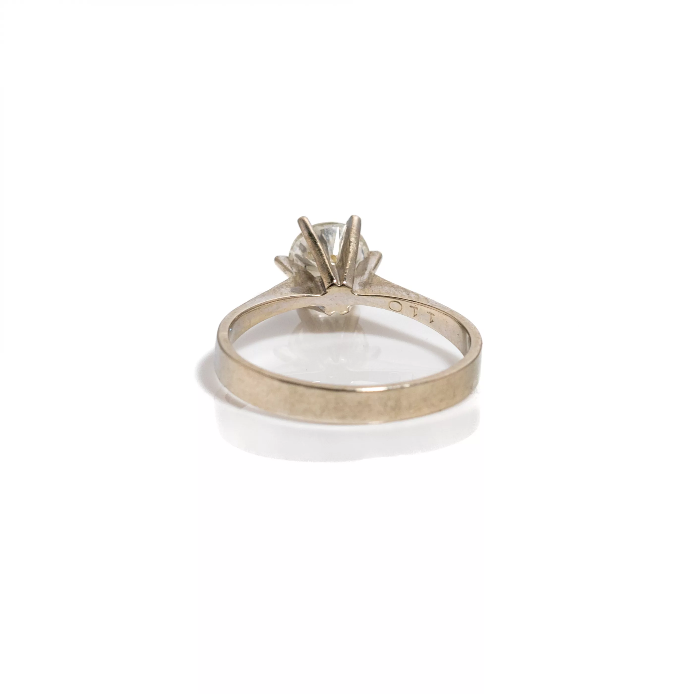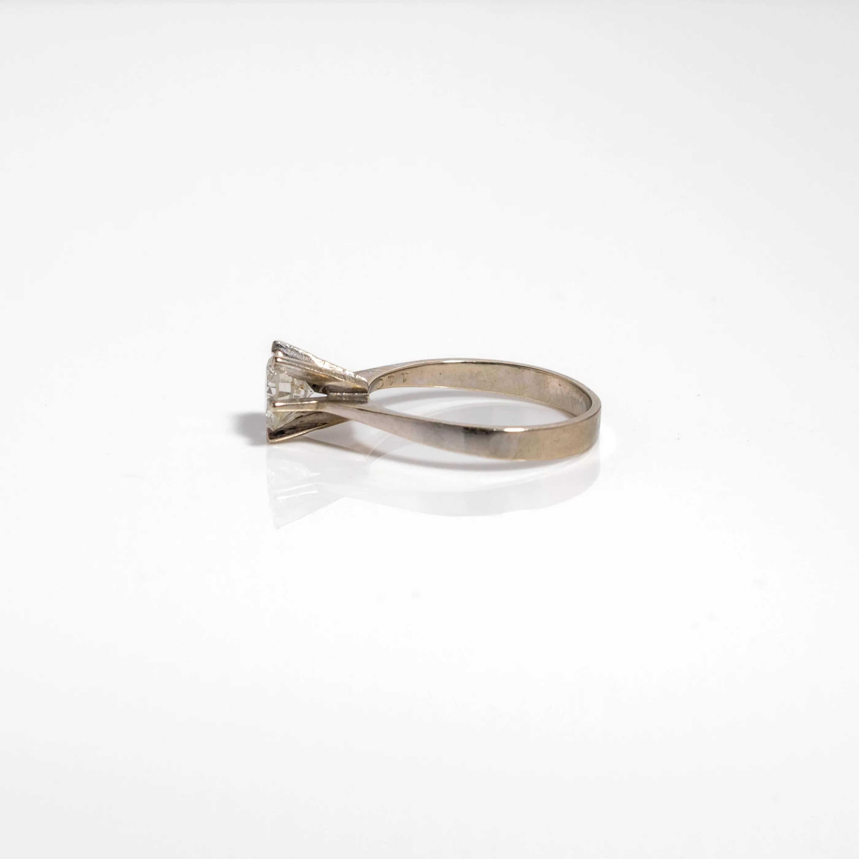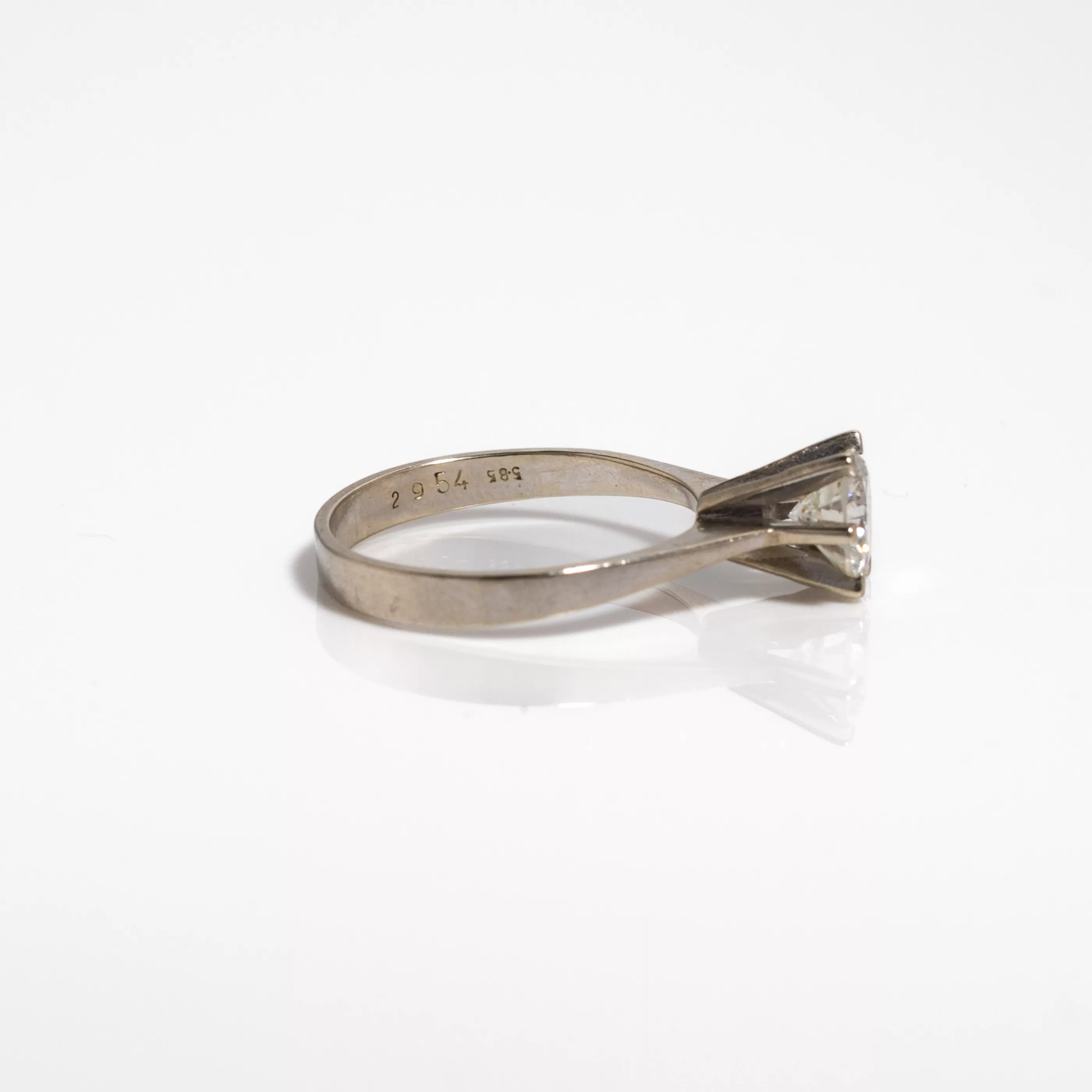 585 Weißgold, punziert, besetzt mit einem Diamanten im Brillant-Schliff, ca. 0,65 ct, H, SI2 - P, Ringgröße 57, Gesamtgewicht ca. 3,1 g
