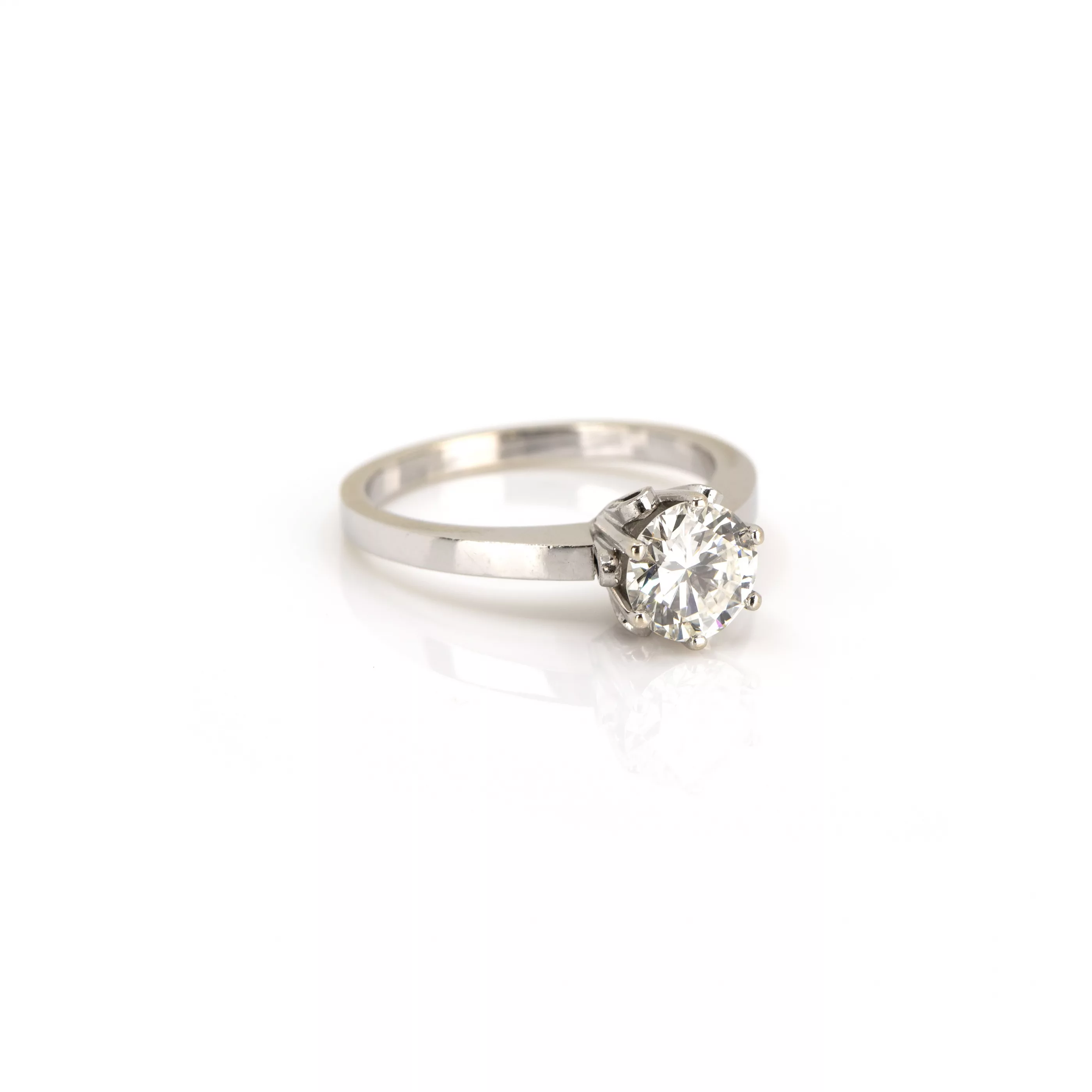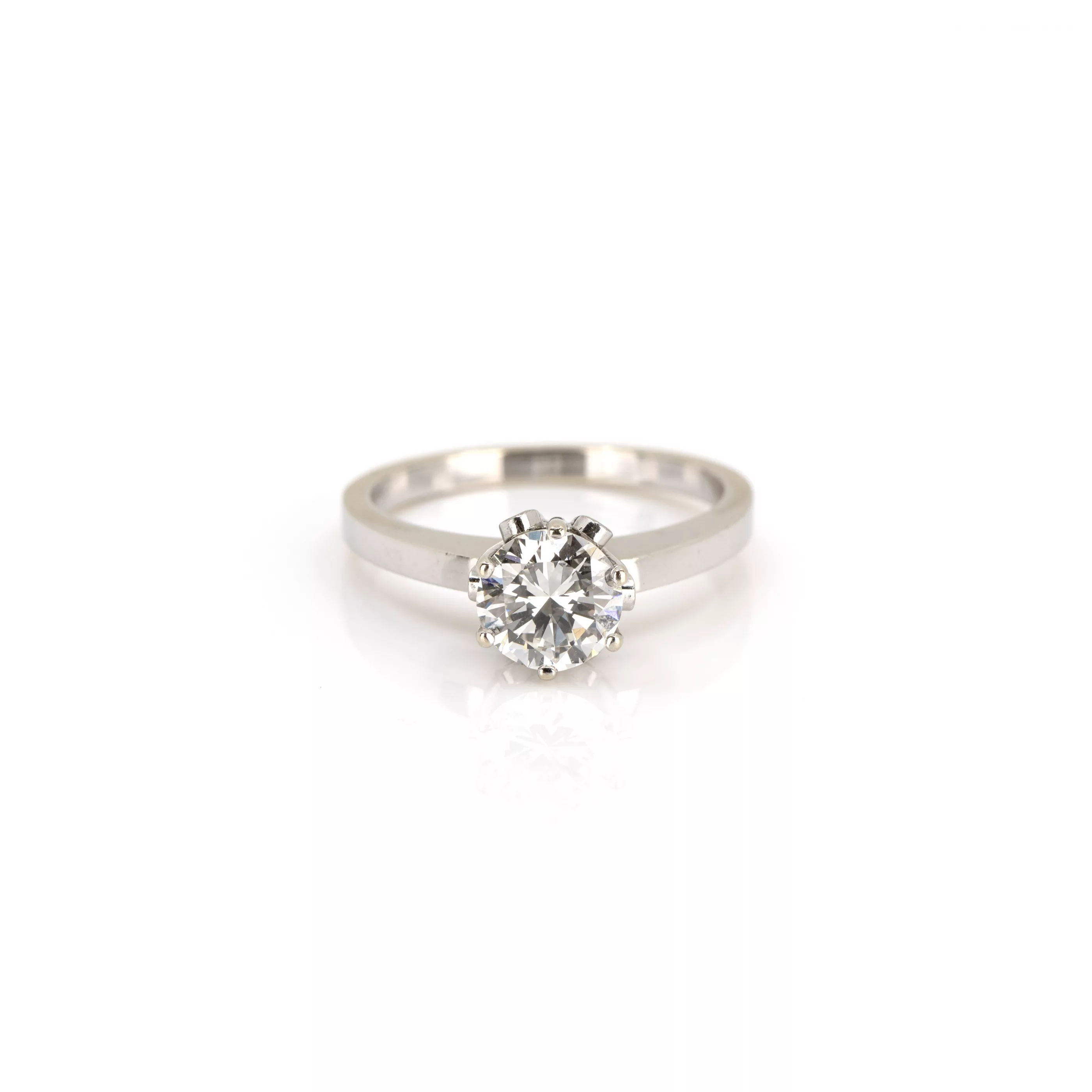 750 white gold, hallmarked, brilliant cut diamond, ca. 1,10 - 1,15 ct, G, vvs, ring diameter 17,5 mm, weight ca. 4,5 g