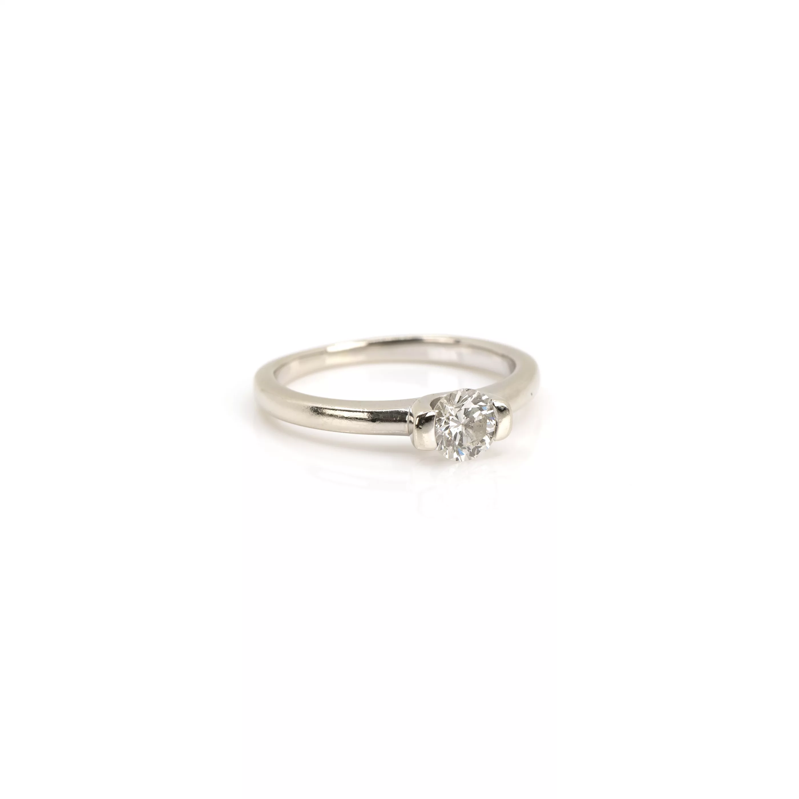 585 white gold, hallmarked, brilliant cut diamond, ca. 0,40 ct, H, si, ring diameter 16,5 mm, weight ca. 2,7 g