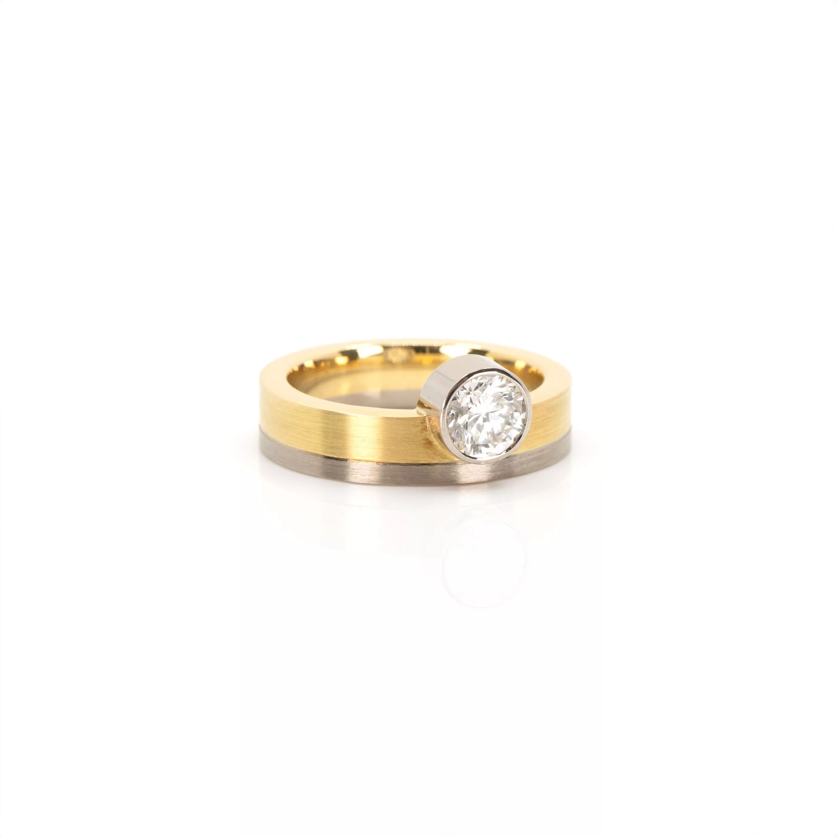 750 Gelb- und Weißgold, punziert, Diamant im Brillantschliff, 1,15 ct, H, vs, Ringdurchmesser 19,5 mm, Gewicht ca. 15,3 g, Beleg des Goldschmieds anbei