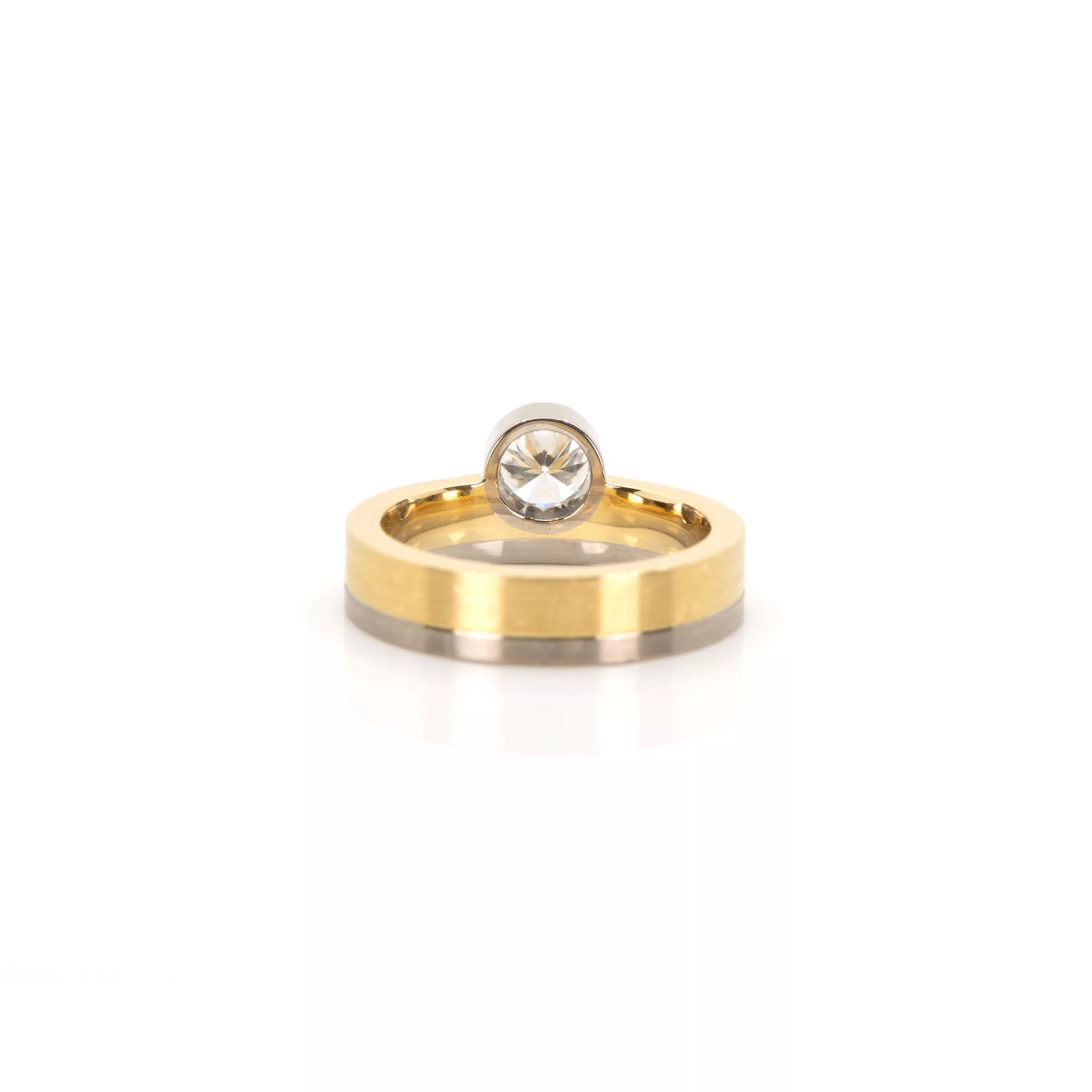 750 yellow and white gold, hallmarked, brilliant cut diamond, 1,15 ct, H, vs, ring diameter 19,5 mm, weight ca. 15,3 g, goldsmith's receipt enclosed
