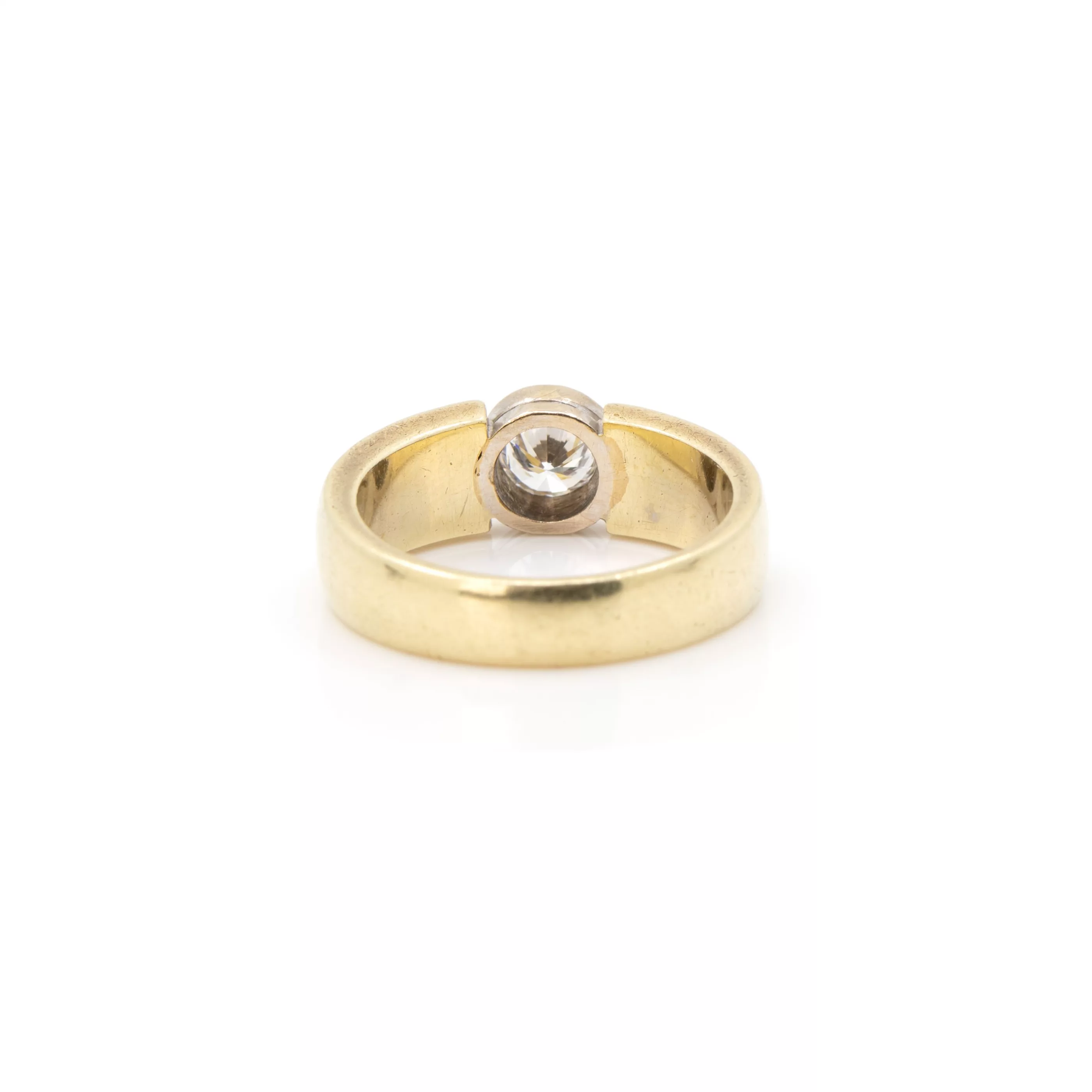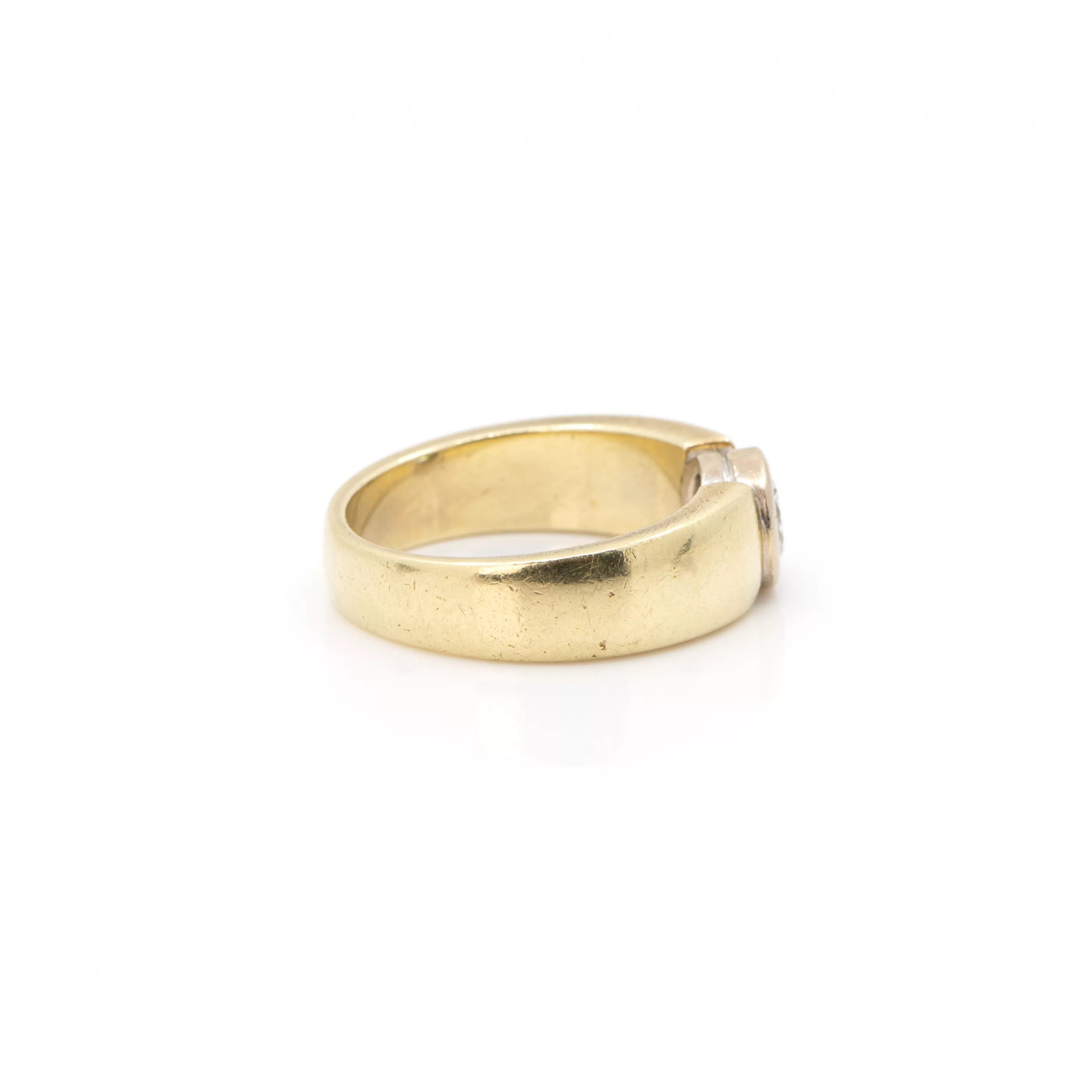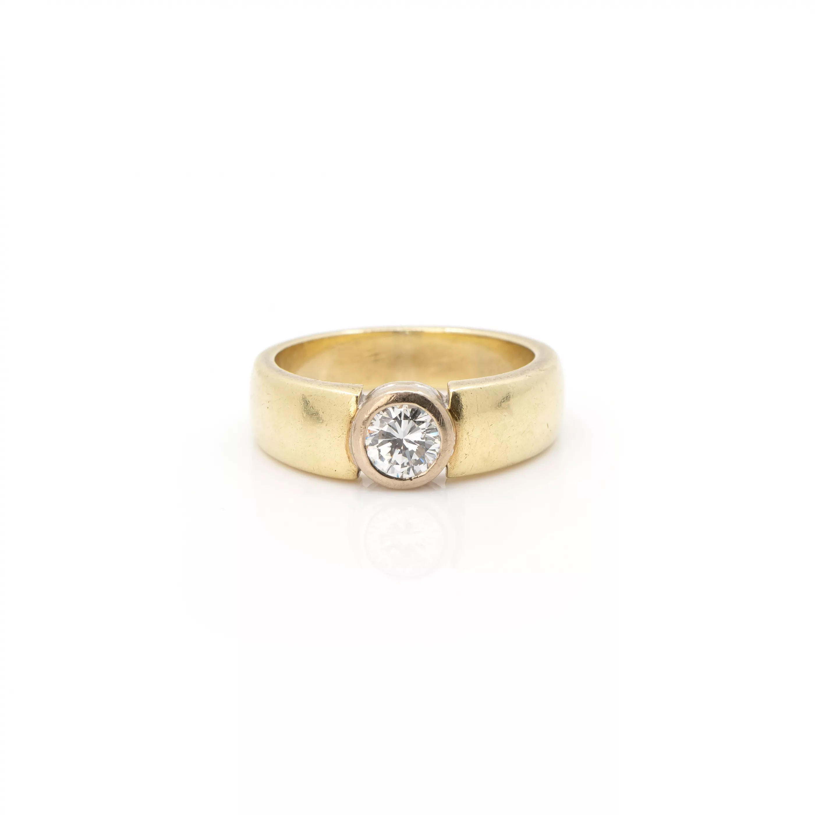 585 yellow and white gold, hallmarked, central brilliant-cut diamond, approx. 0.55 ct, G-H, vvs-vs, ring diameter 18.5 mm, weight approx. 9.7 g