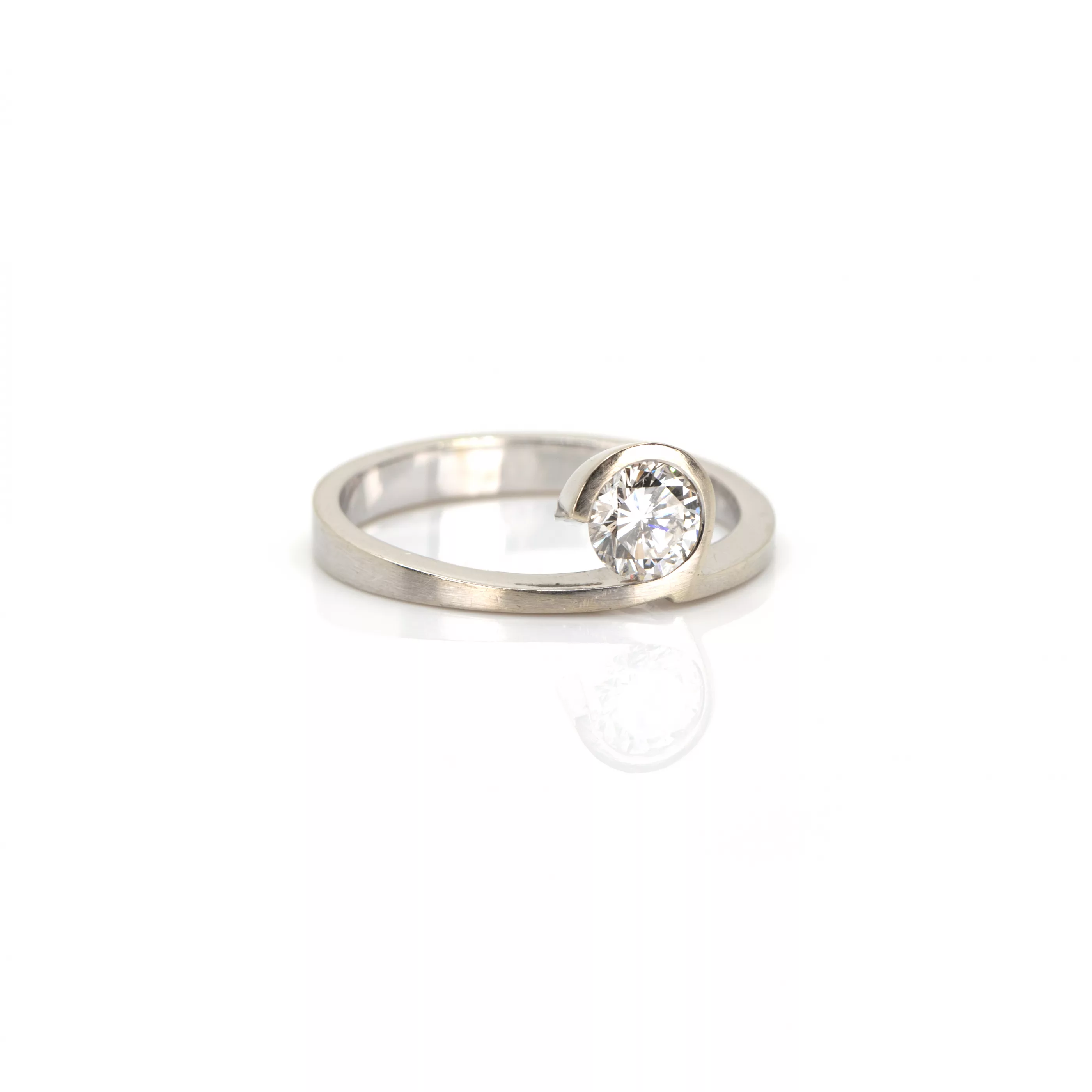 585 Weißgold, punziert, Diamant im Brillantschliff, ca. 0,52 ct, H, vvs-vs, RW 56, Gewicht ca. 3,3 g