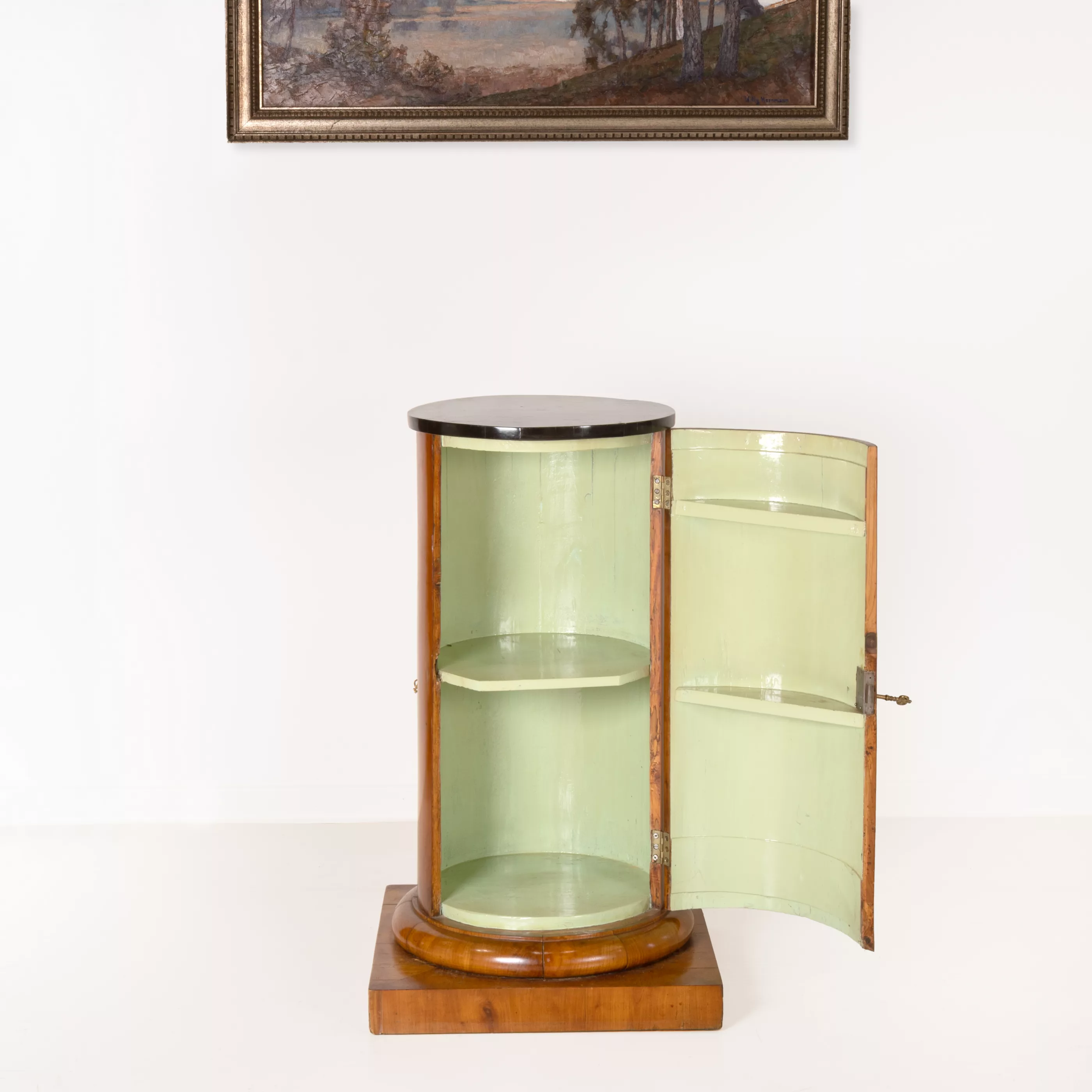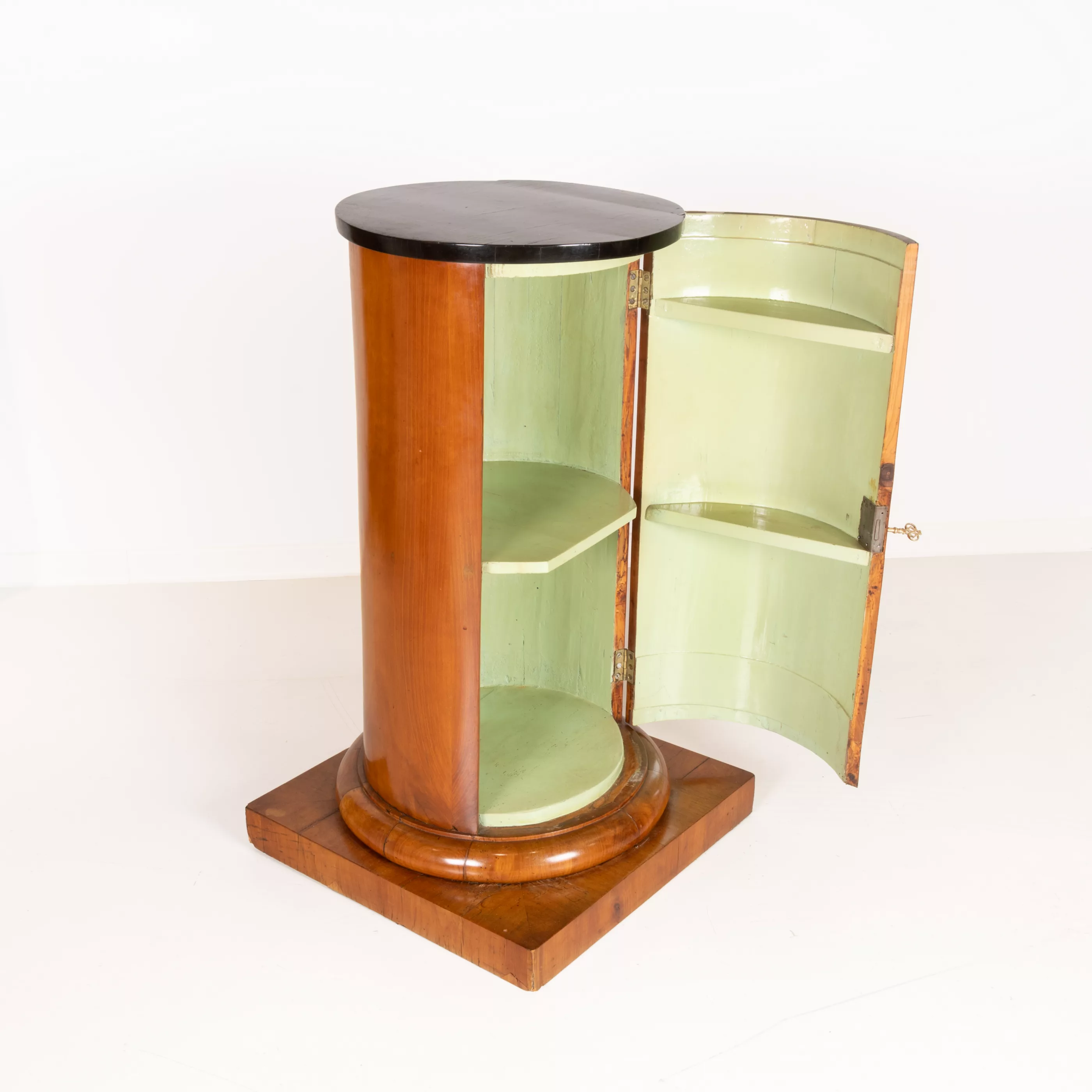 Germany, 19th century, cherry veneer on softwood, black lacquered top, 81 x 47 x 47 cm, condition C, broken top, small chips and knocks to the lacquer, green lacquered interior