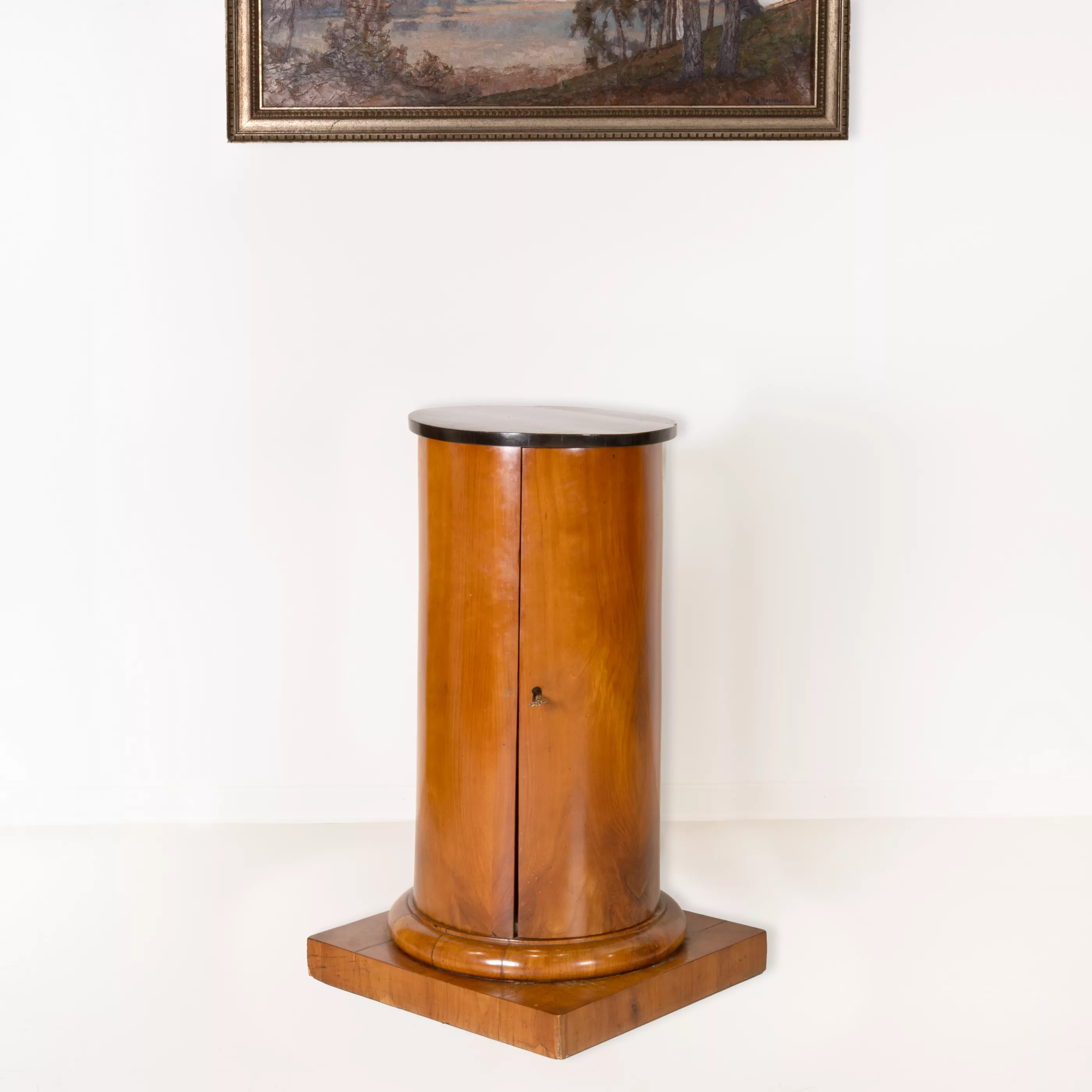 Deutschland, 19. Jh., Kirschfurnier auf Nadelholz, Platte schwarz lackiert, 81 x 47 x 47 cm, Zustand C, Platte gebrochen, kleine...