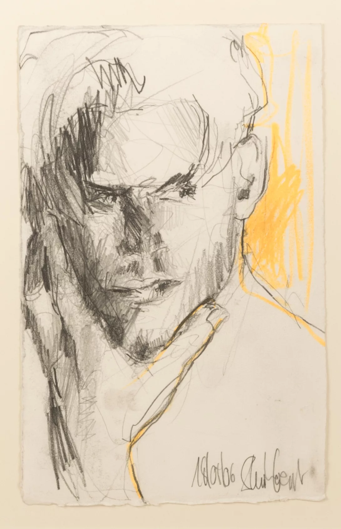 Männerporträt, Bleistift und Farbkreide auf Papier, 26 cm x 16,5 cm Blattmaß, signiert, 18/04/06 datiert, montiert