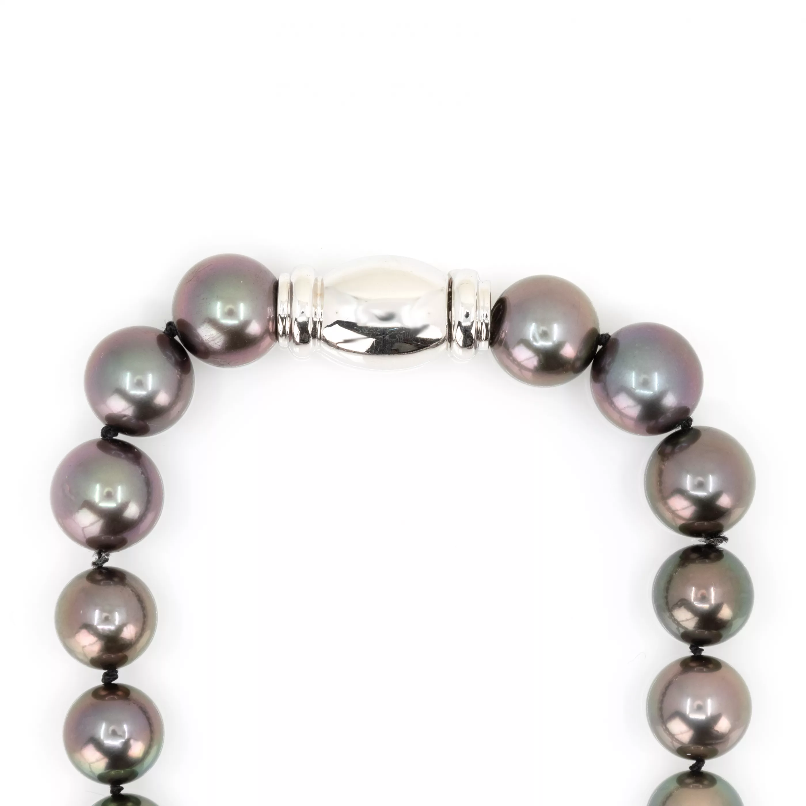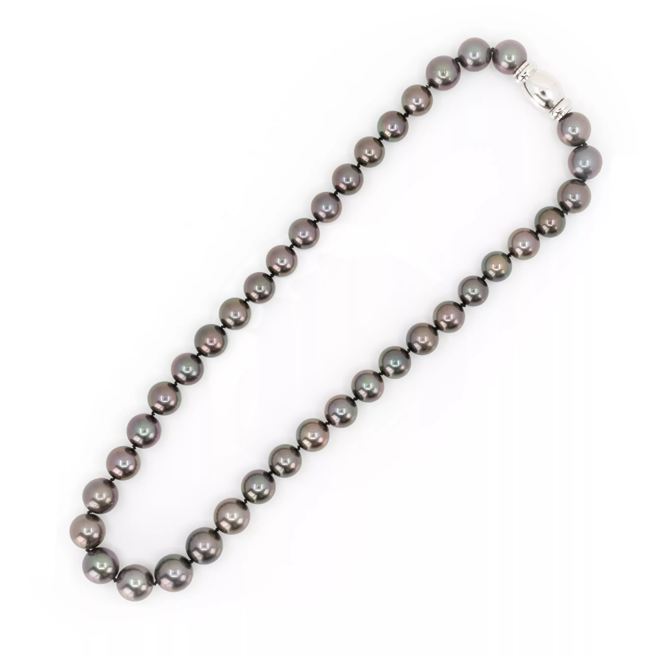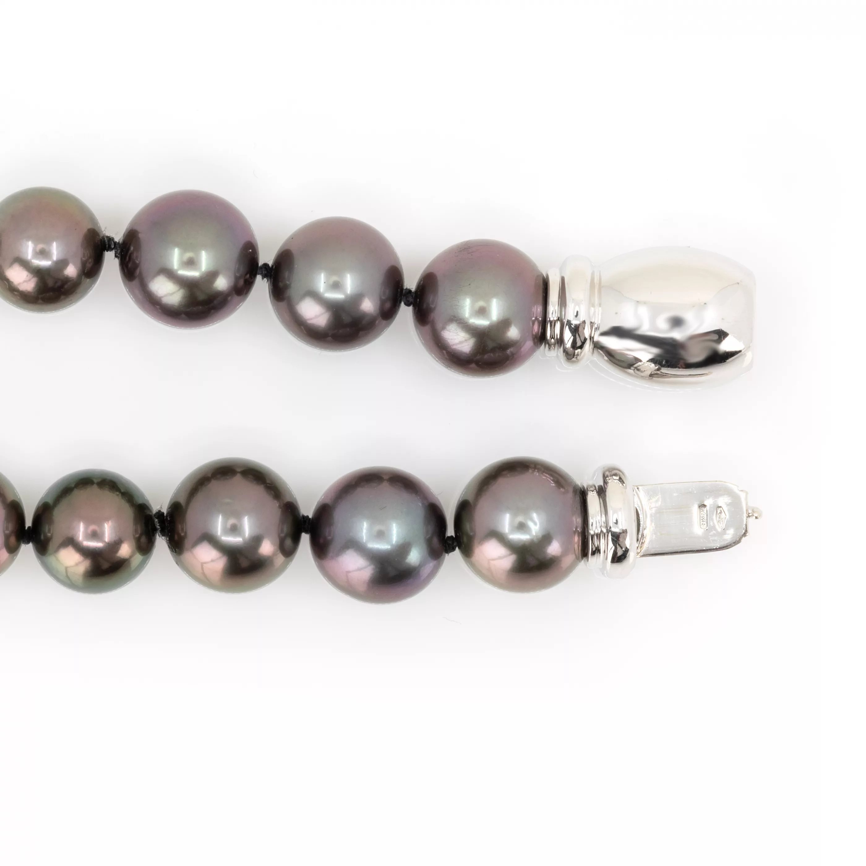Verschluss 750 Weißgold, punziert, 39 Perlen, Ø 10-12,3 mm, Länge 48 cm, Gewicht ca. 76,6 g, Kopie der Rechnung anbei