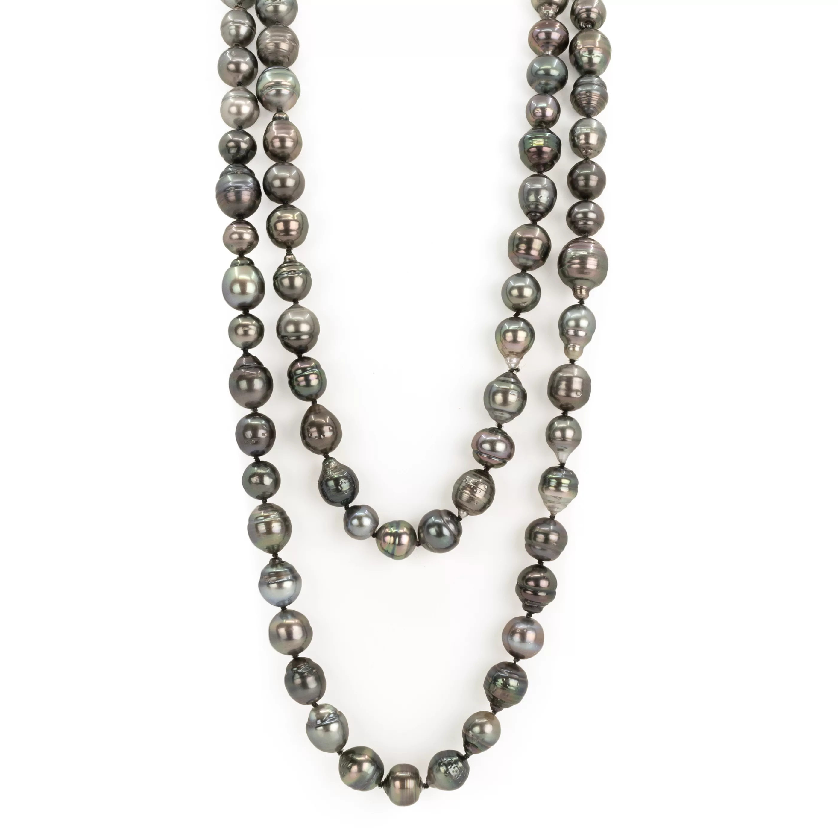Semi-barocke Endlosperlenkette mit Tahitizuchtperlen, Länge ca. 115 cm, Ø Perlen 8,80 mm - 12,60 mm, Gewicht ca. 158 g