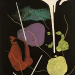 Abstraktes Stillleben, Mischtechnik auf festem Papier, 34,5 cm x 24 cm Sichtmaß, signiert, 56 datiert, montiert, weiße Fläche leicht craqueliert, partiell oberflächlich leicht berieben