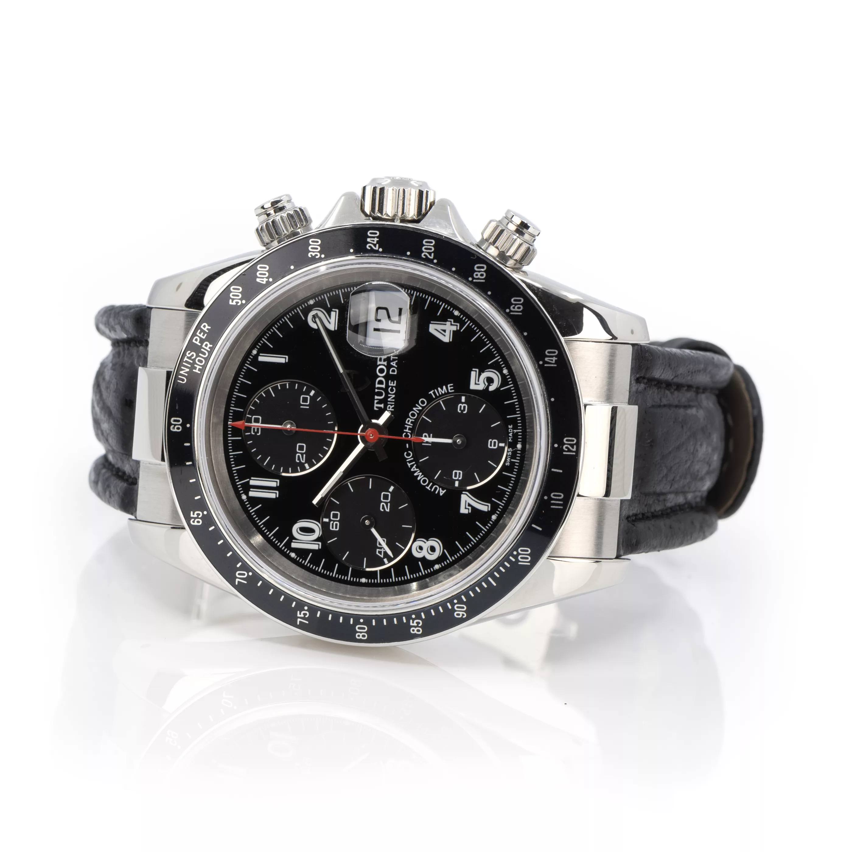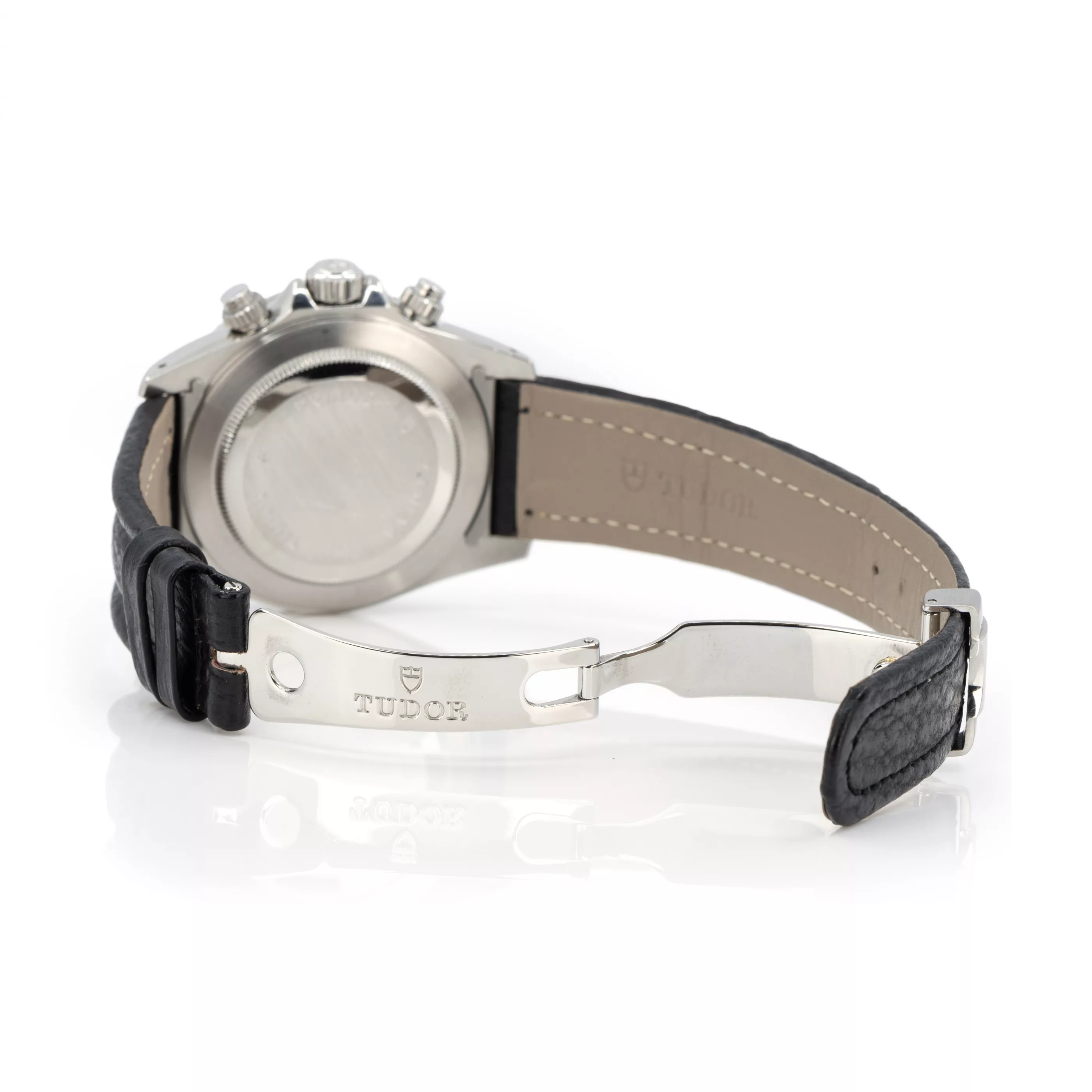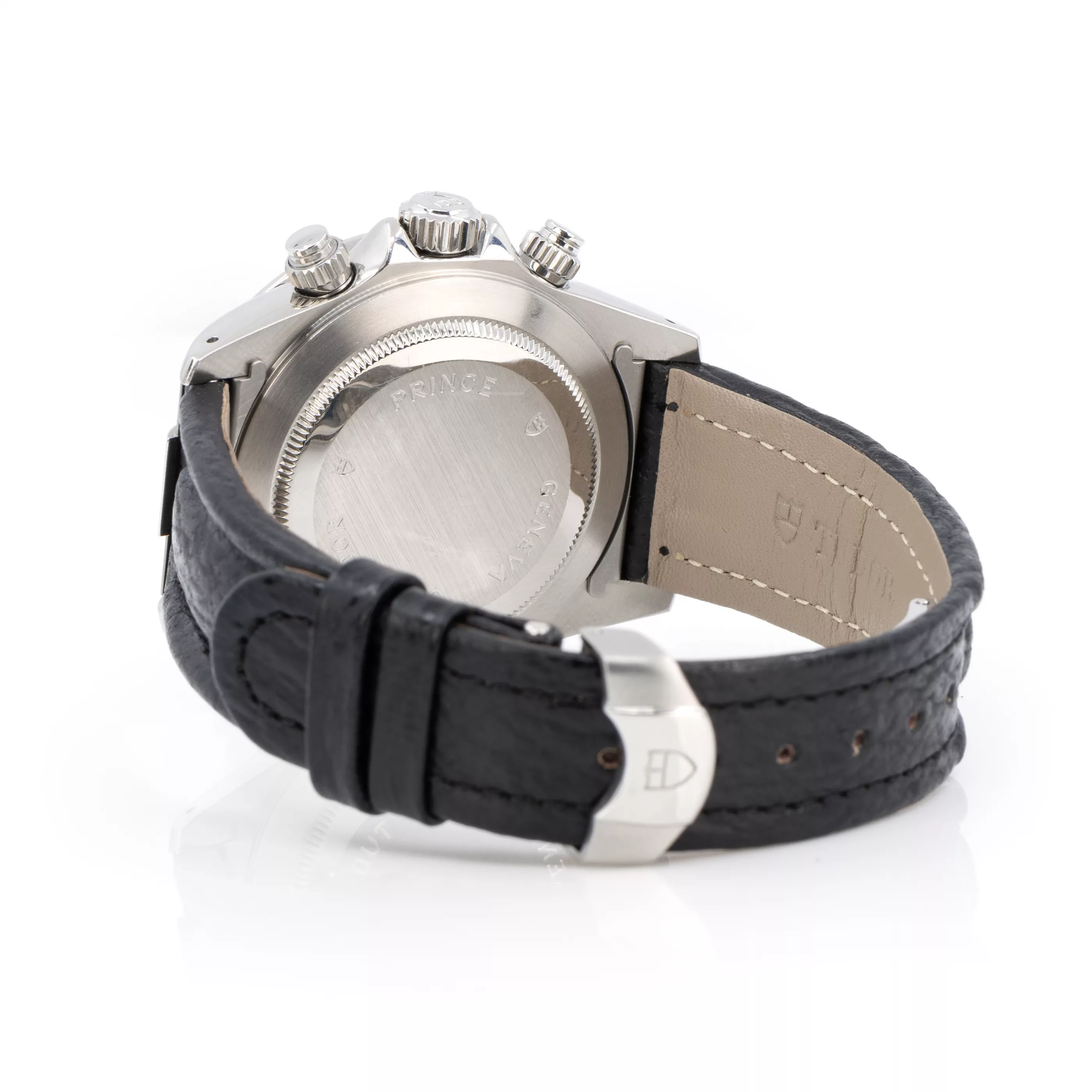 Automatic, ref. no. M79260P | Serial No. H420818, black dial, date at 3 o'clock, tachymeter, screw-down crown and pushers, 30-minute and 12-hour counters, small seconds, steel case, diameter 39 mm, original bracelet, leather, original folding clasp, steel, length 17 cm, weight approx. 99.8 g, function tested, working, last revision from 2022, without original box, but with papers and revision card, note: The buyer's premium is 25% incl. VAT. For the use of the online bidding consoles there is an additional fee of 3% plus VAT (3.57%).