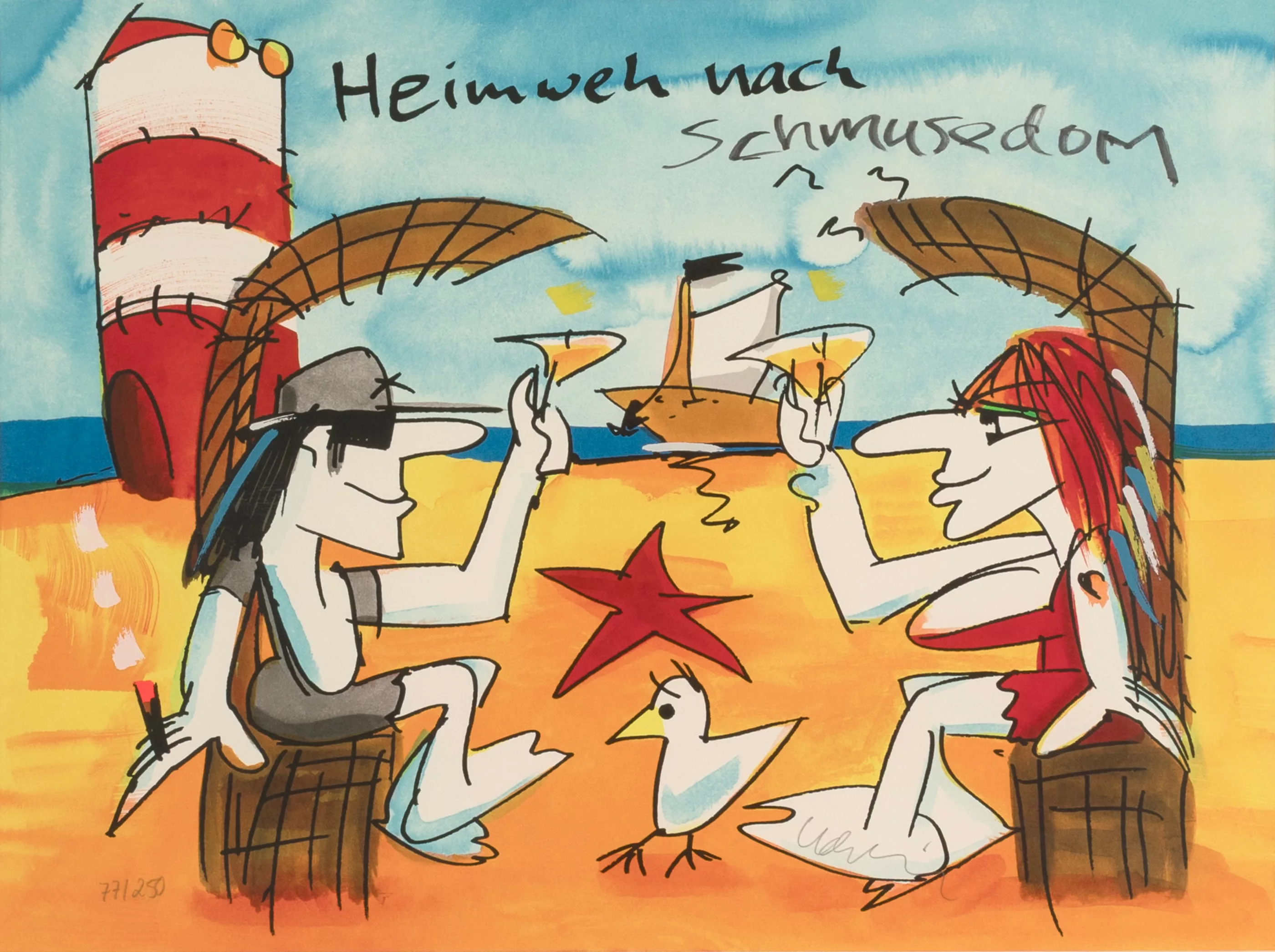 'Heimweh nach Schmusedom', Siebdruck 40,8 cm x 54 cm Sichtmaß, signiert, 77/250 nummeriert, montiert, Zertifikat der Galerie Hunold anbei