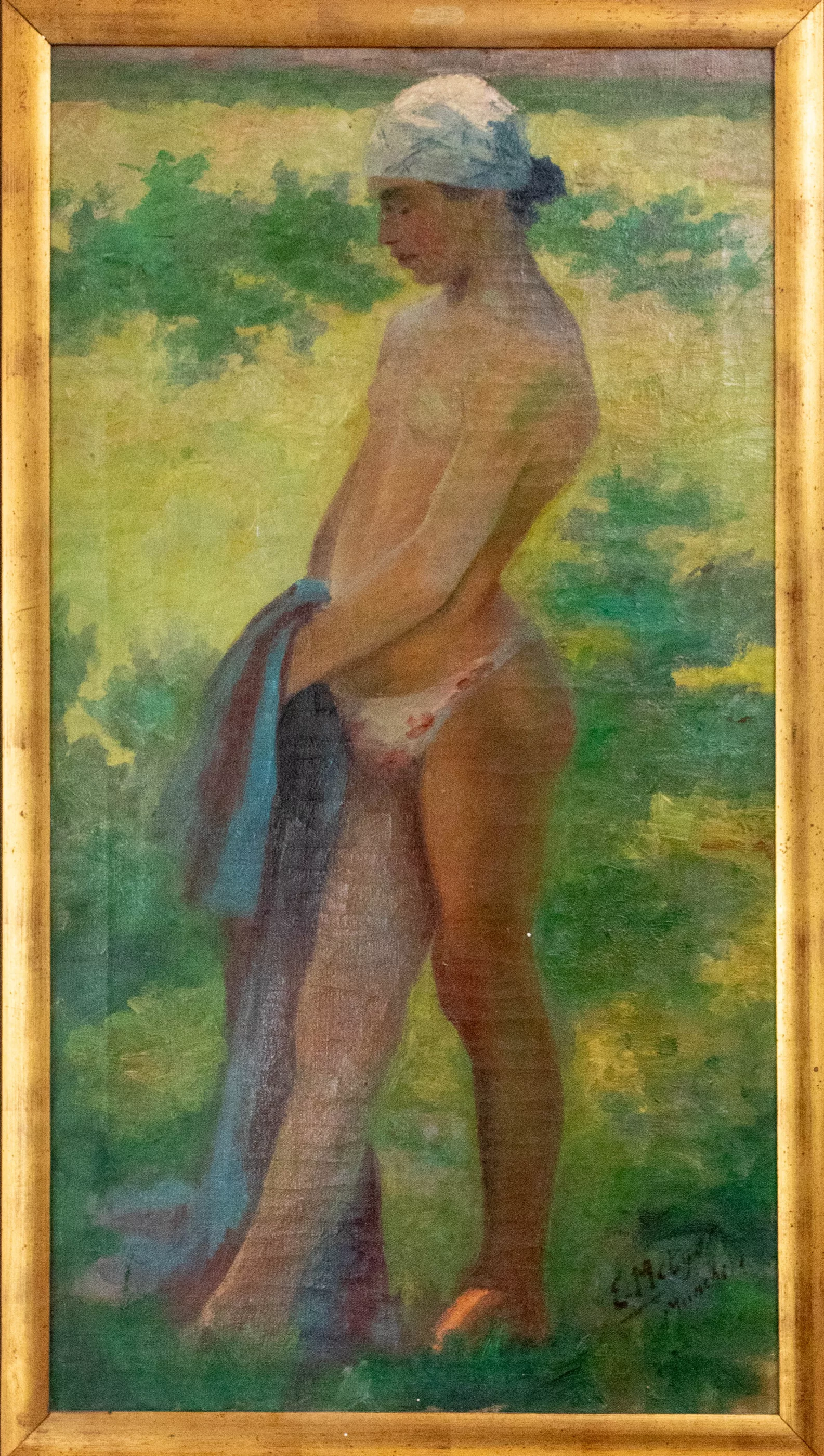 Unidentified artist, Standing Bather, oil on canvas, 110 × 59 cm canvas dimensions,