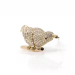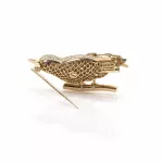 Vogelbrosche mit Brillantbesatz750 Gelbgold, geprüft, ca. 155 Diamanten im Brillantschliff, gesamt ca. 2,10 ct, F-G, vvs-vs, 1 Rubin als...