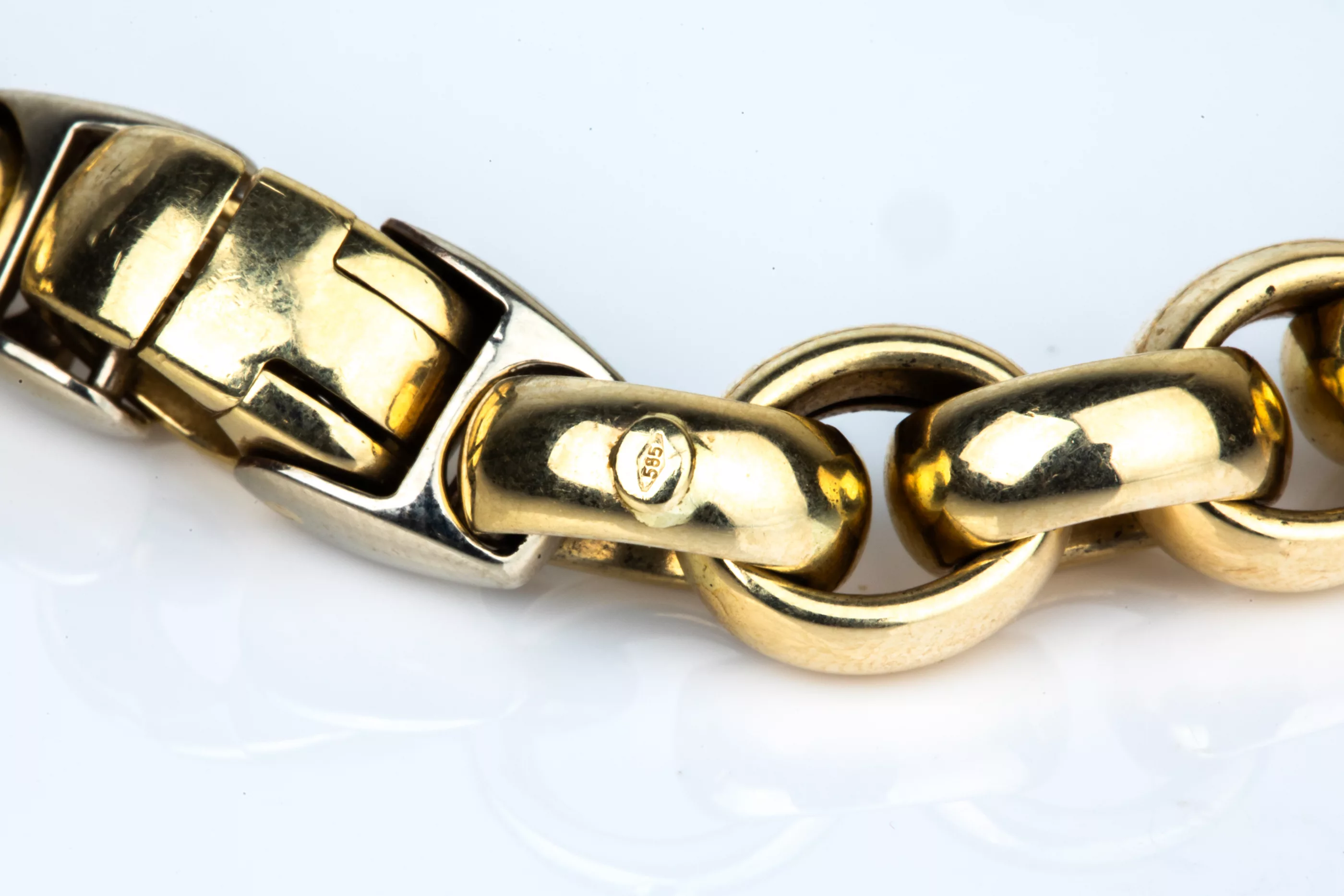 585 Gelbgold, punziert, partiell rhodiniert, Länge ca. 45,3 cm, Gewicht ca. 63,7 g