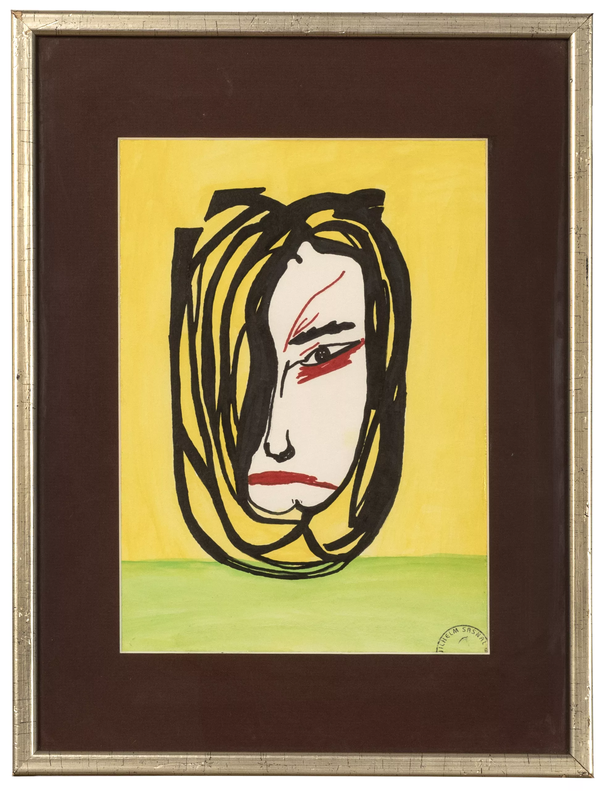 Porträt, Aquarell auf Papier, 28 cm x 20 cm Sichtmaß, gestempelt, minimal gewellt, Kleberrückstände am Rand, mont