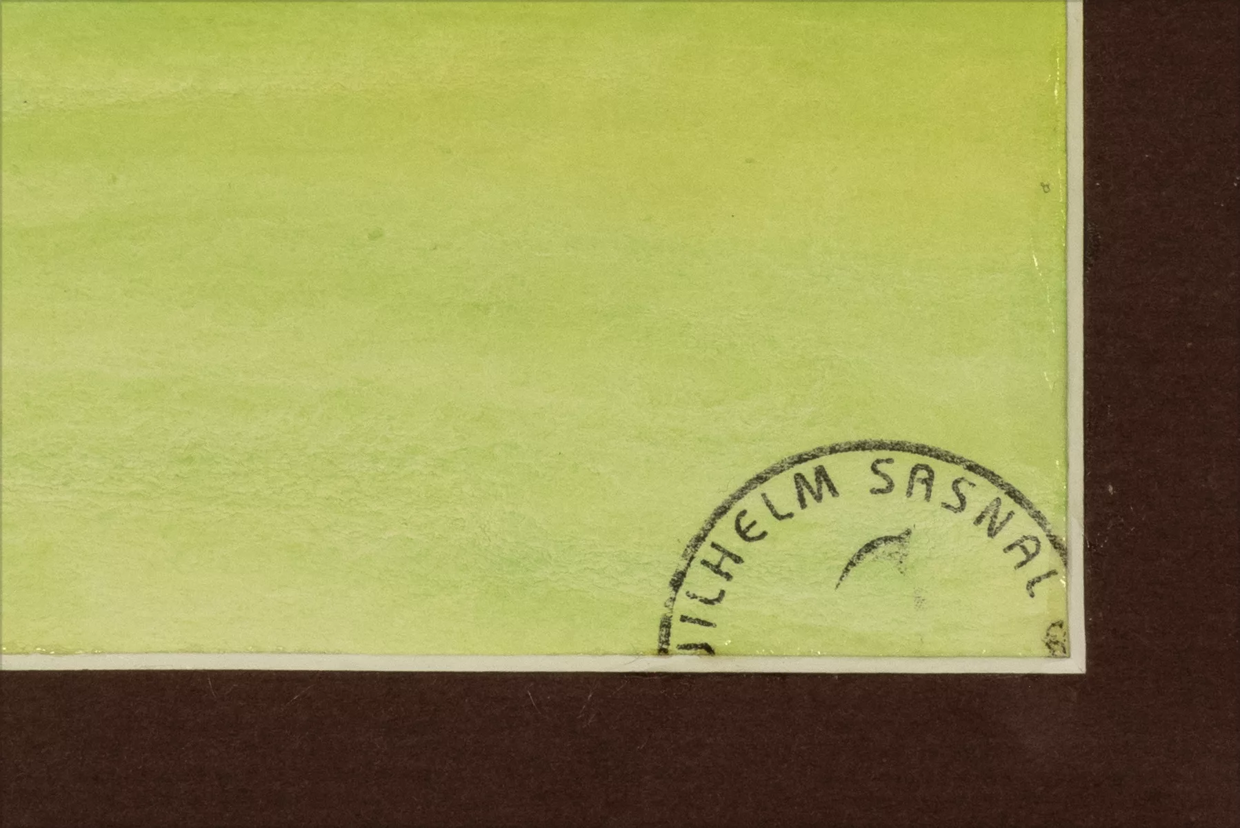 Portrait, watercolour on paper, 28 cm x 20 cm inside mount dimensions, stamped, minimally wavy, adhesive residue on the edge, mounted