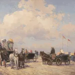 Carriages on the beach, oil on canvas, 60 cm x 70 cm canvas size, signed, original certificate enclosed