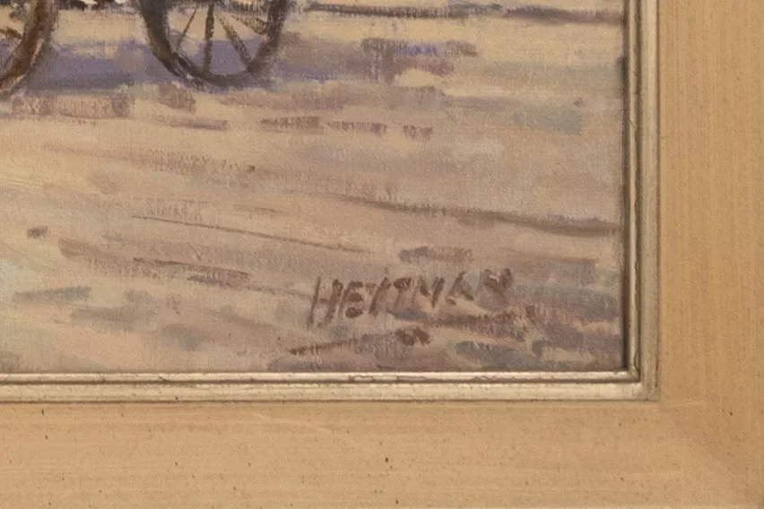 Kutschen am Strand, Öl auf Leinwand, 60 cm x 70 cm Leinwandmaß, signiert, Original-Zertifikat anbei