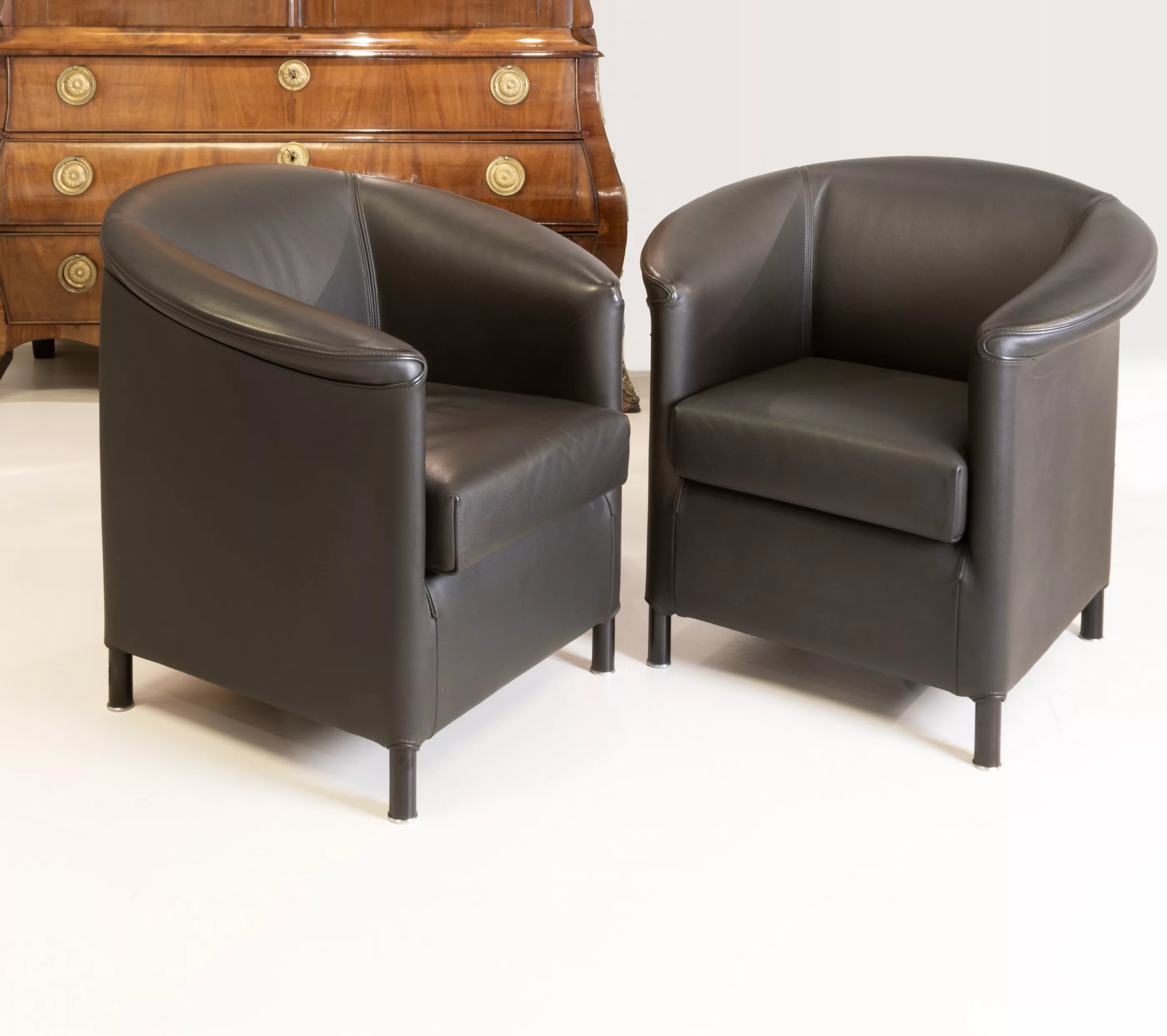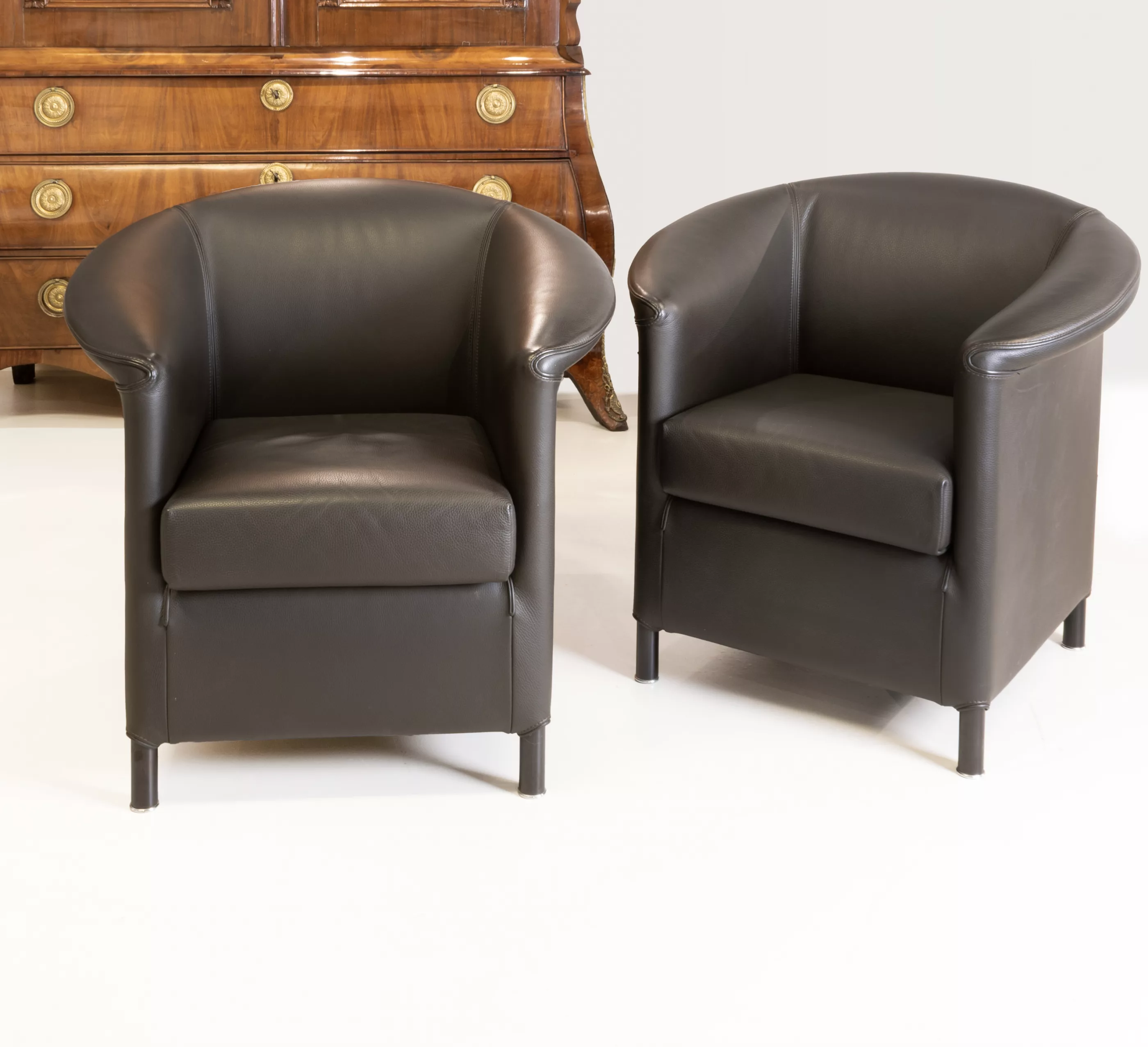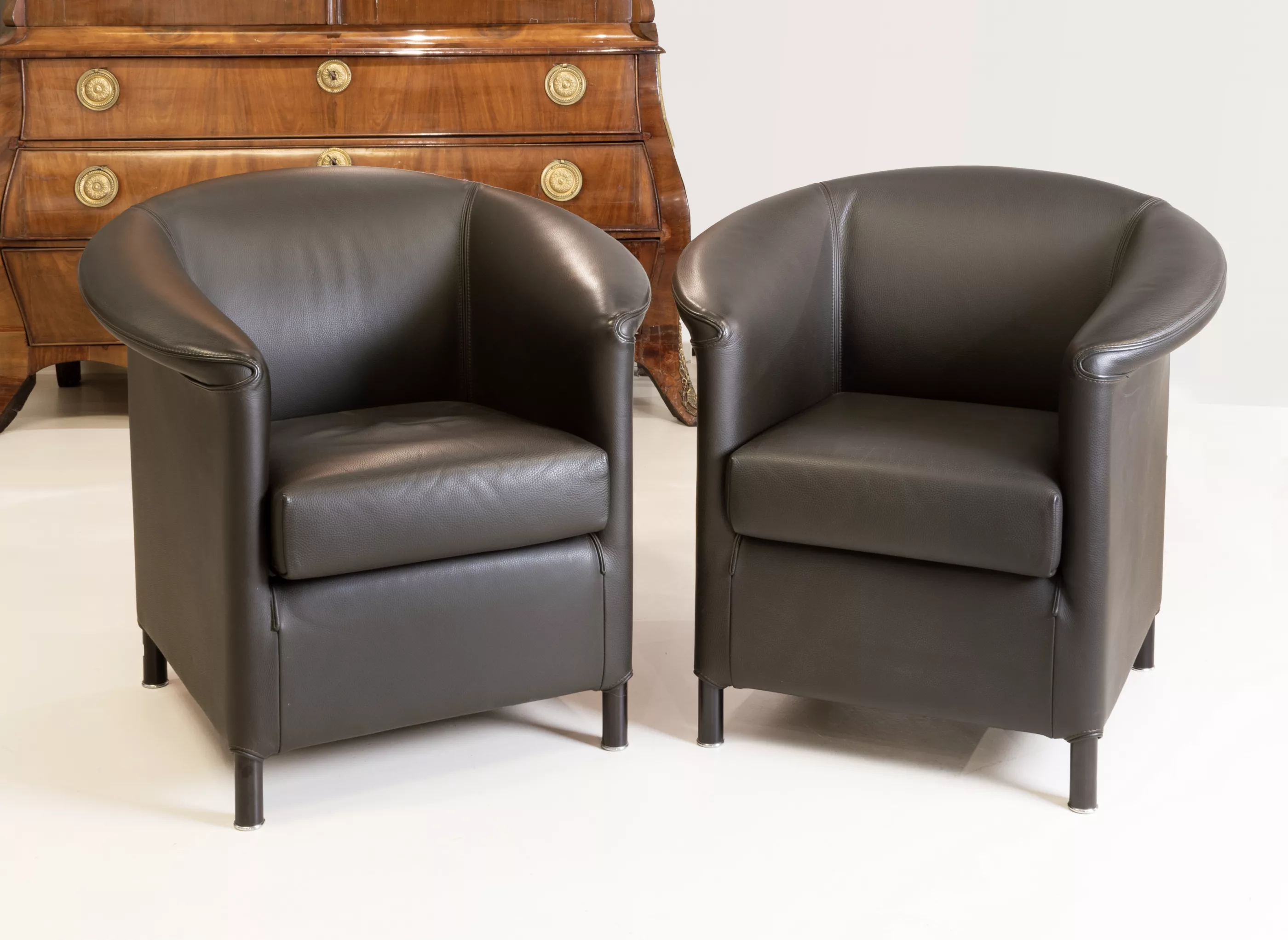 Wittmann, Austria, design by Paolo Piva (1950 - 2017) from 1983, production 2010, cover made of soft nappa leather, black-grey, textile on the underside, zip fastener on the back, removable seat cushion, also with zip fastener, wooden feet, black lacquered, chrome-coloured plastic glides, each signed and dated 2010 on the manufacturer's label on the underside, 75.5 cm x 78 cm x 68 cm, seat height 42 cm, hardly any signs of age and use, condition A
